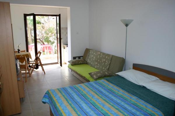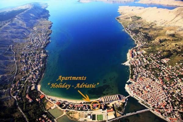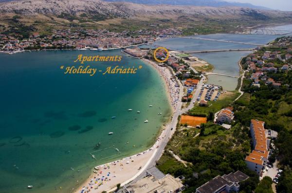 Apartmány v městě Pag je pouhých 10 metrů od písečné pláže, hned vedle ambulance a obchodů. V centru města, restaurace, pošta, lékárna a podobné destinace, budete muset projít asi deset minut. Snadná dostupnost a minimální vzdálenost od našeho domova ke všem zařízením, které budete potřebovat v průběhu prázdnin, aby naše apartmány ideální volbou pro rodiny s malými dětmi. Náš dům byl postaven na přírodní hejna, a moře je na obou stranách domu. V zahradě u domu je studna pramenité vody, gril, stůl pro více lidí a hřiště pro hosty k použití. Oplocené a hlídané parkoviště se nachází u domu přes silnici.