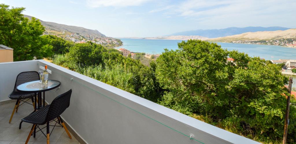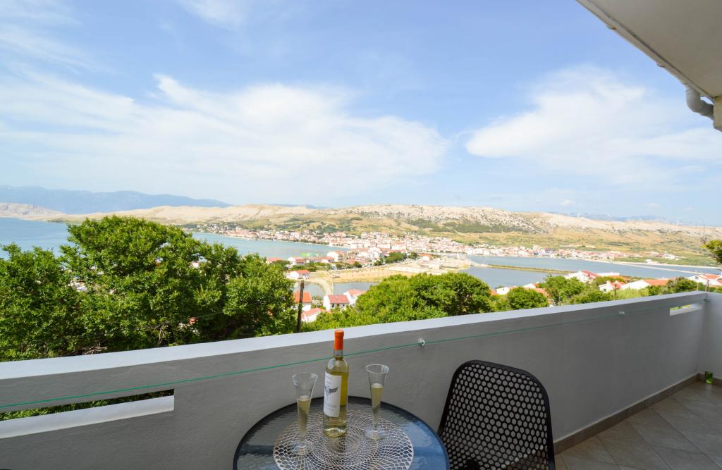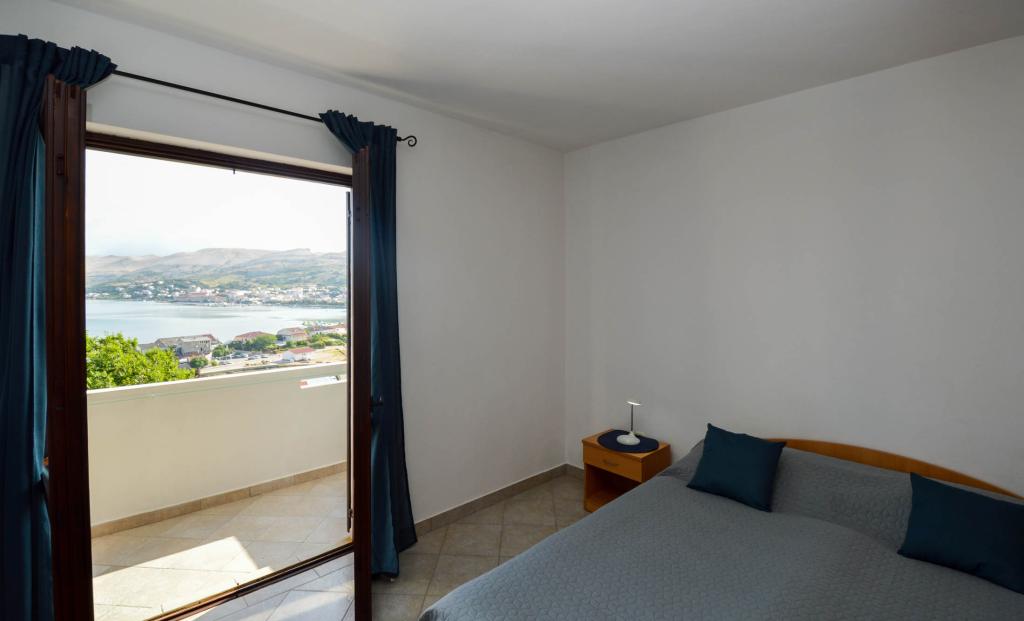 Apartmány s krásným výhledem na moře a město Pag, pouhých 250 metrů od pláže a 10 minut chůze do centra města. V objektu jsou 2 apartmány každý pro 4 osoby Apartmány mají plně funkční kuchyň (lednice, trouba, sporák atd.), satelitní televizi, koupelnu, manželské postele. U každého apartmánu nebo pokoje je zajištěno parkování a WI-FI internet. V blízkosti bytu jsou obchody, restaurace, plážové bary, dětská hřiště, rychlé občerstvení...