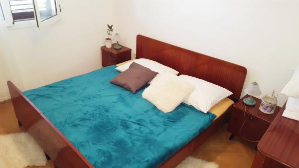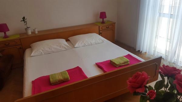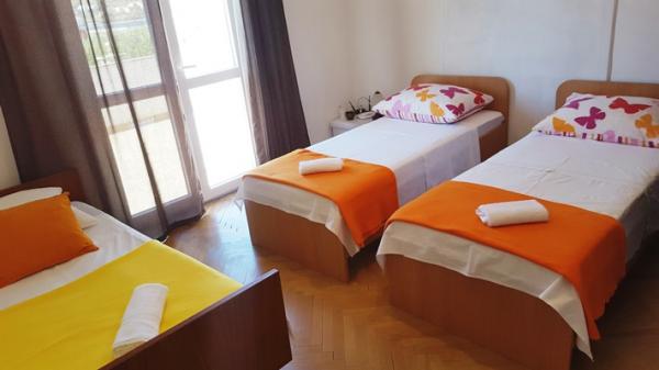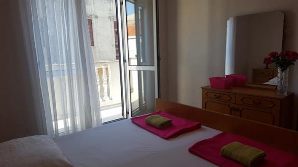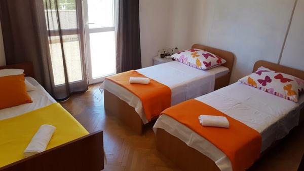 Apartmán pro 7 osob se nachází v prvním patře, na klidném místě, pokoj pro 2 osoby s vlastním sociálním zařízením, pokoje pro 2 osoby s balkonem, pokoj pro 3 s balkonem, další koupelna, kuchyň a jídelna. Velký balkón 45m², kde si můžete vychutnat čerstvý vzduch. To má klimatizaci a SAT / TV. Byt 3 1 je v přízemí s jednou ložnicí, pro 3-4 osoby, koupelna, kuchyň a jídelna s možností jedné přistýlky, terasa. Máme velký dvůr s parkovištěm.