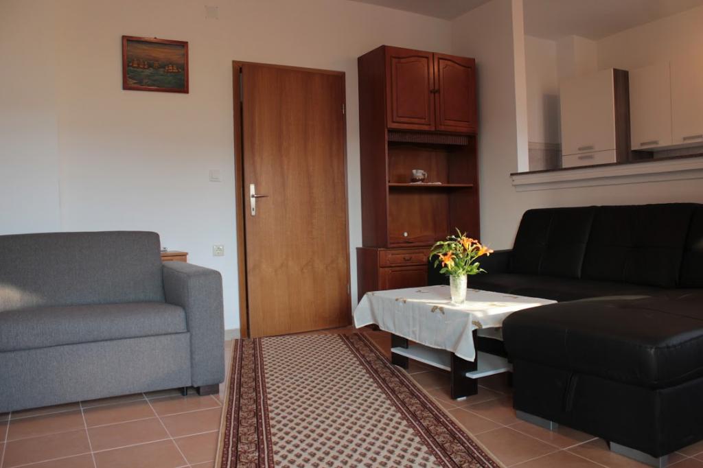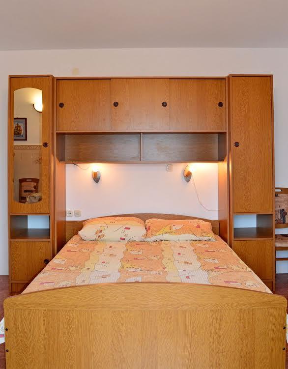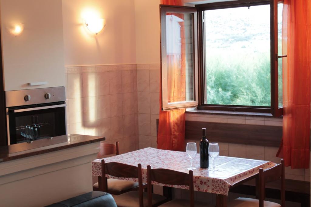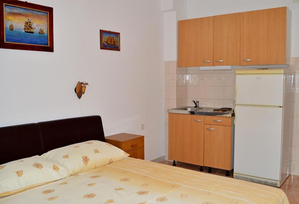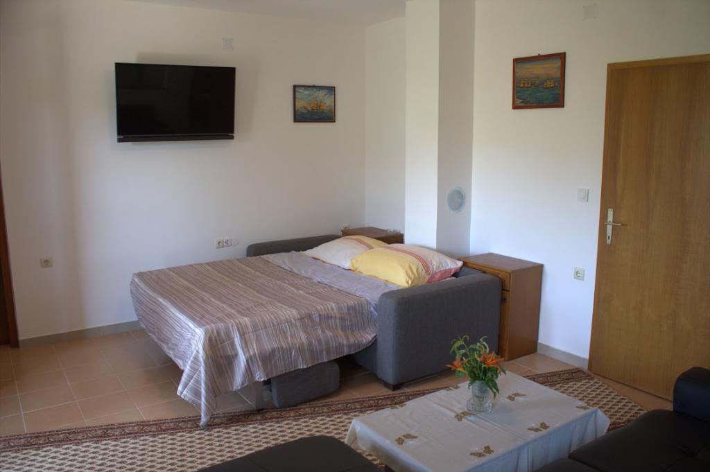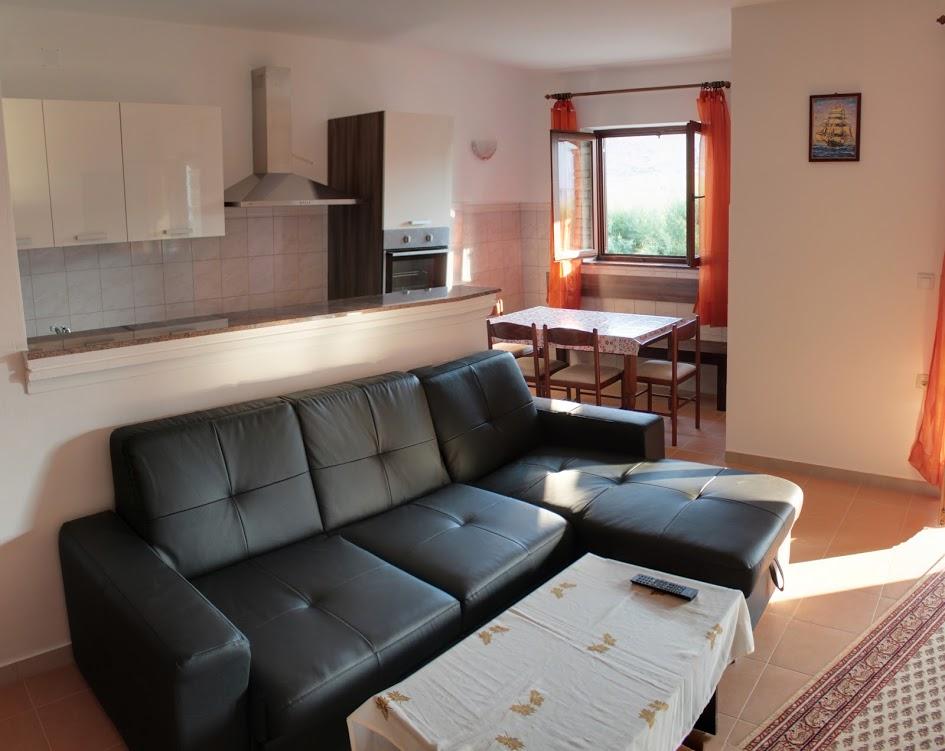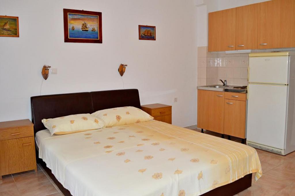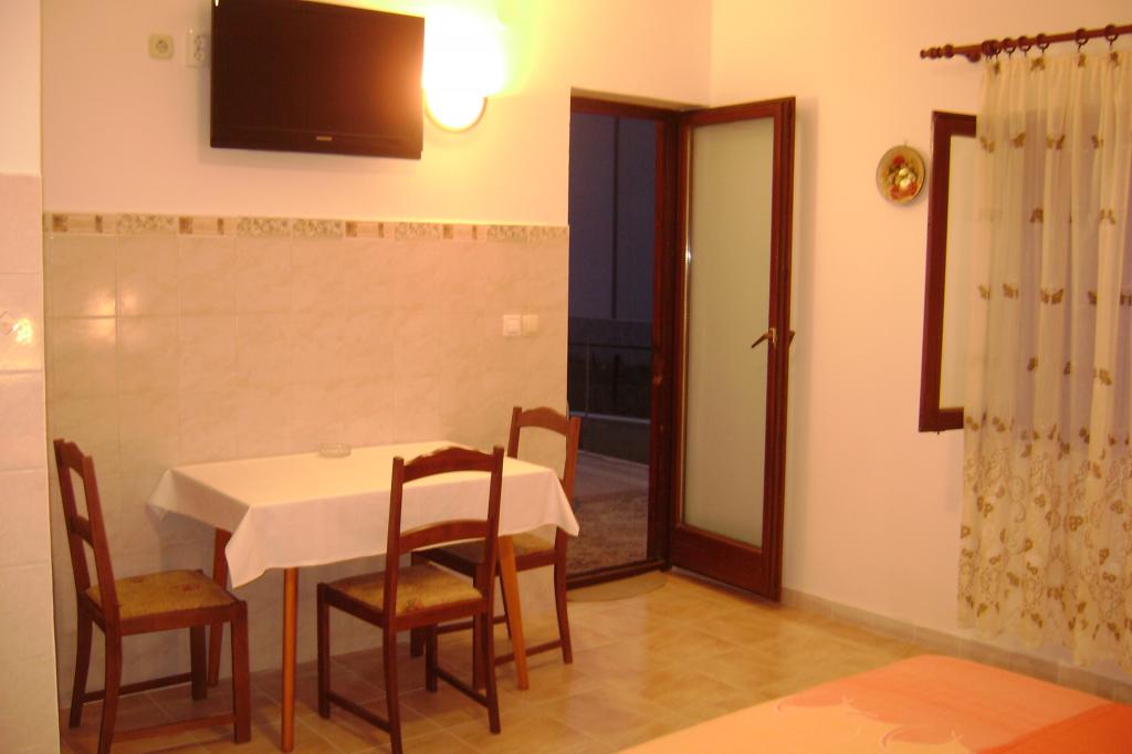 Tři studiové apartmány: pokoje s kuchyní, koupelnou a velký apartmán pro 4 osoby (2 + 2) se nacházejí ve městě Pag. Dva studiové apartmány se nacházejí v přízemí a jeden studiový apartmán v prvním patře velkého rodinného domu. Nachází se 10 minut chůze od hlavního náměstí a patnáct minut od hlavní městské pláže. Apartmány se nacházejí na velmi klidném a klidném místě obklopeném zahradami, přírodou a zelení vhodné pro hosty, kteří chtějí klid a pohodu. Apartmány mají kapacitu 30 metrů čtverečních pro dvě osoby, mají jednu ložnici, kuchyň a koupelnu se sprchou, před vchodem do bytu jsou malé terasy. Apartmány jsou vybaveny TV, satelitem a připojením na internet, apartmán v prvním patře je vybaven klimatizací. V přízemí velkého rodinného domu se nachází byt o rozloze 60 metrů čtverečních s jednou ložnicí, velkou kuchyní, velkým obývacím pokojem s manželskou postelí pro čtyři osoby (2 + 2). Před bytem je malá terasa.