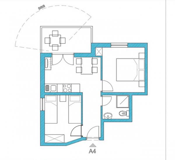 Apartmán pro čtyři osoby s jednou přistýlkou (55 m2)