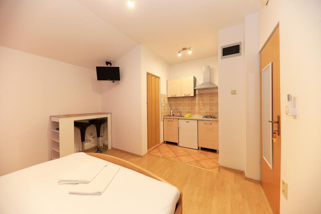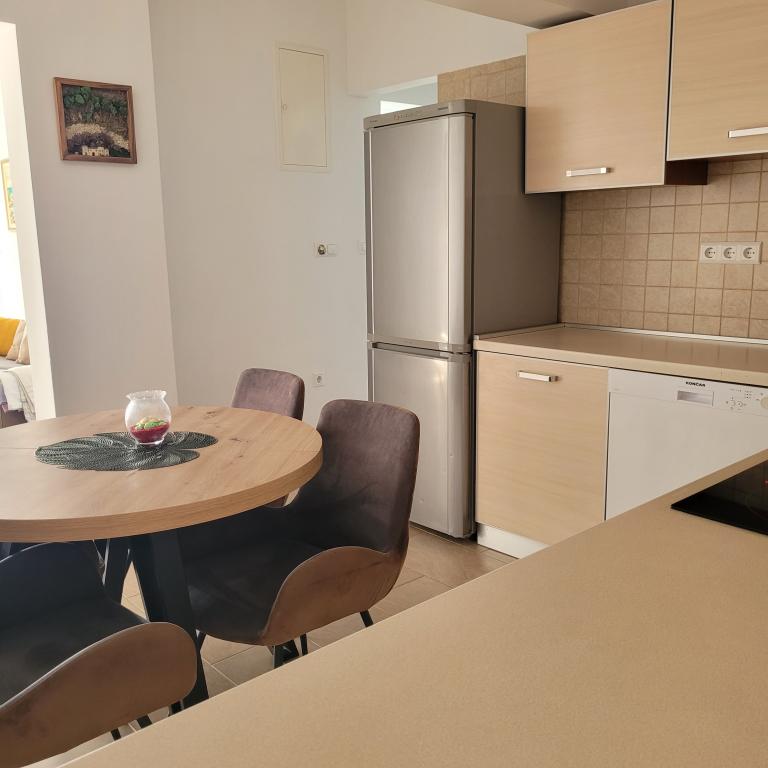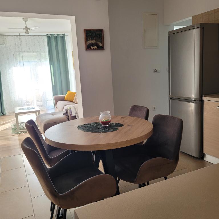 Pěkně zařízené apartmány v blízkosti pláže, nedaleko centra města. Klidné prostředí, ideální pro děti.