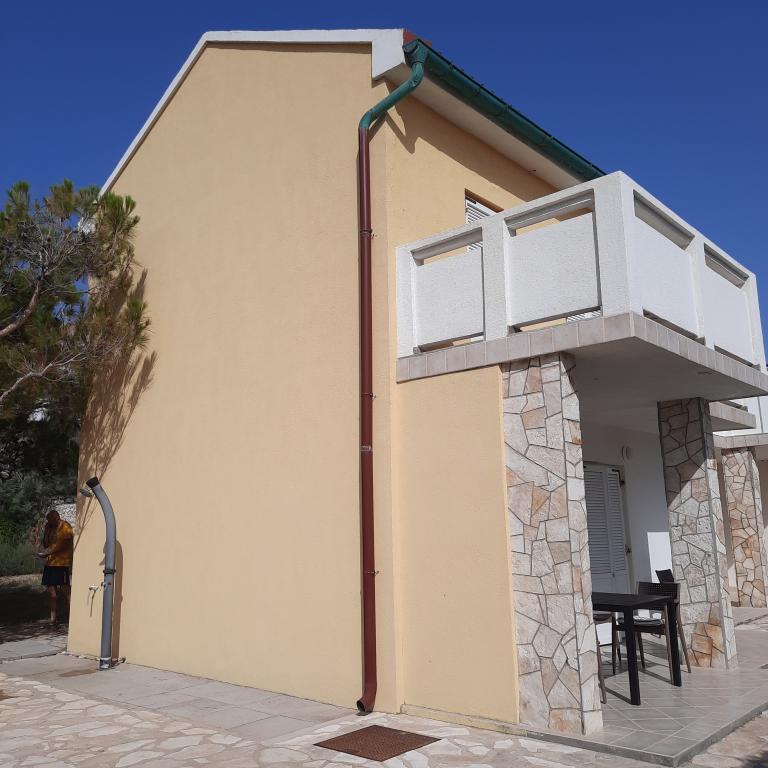Rodinný rekreační dům s velkým dvorem 300 m2 v klidné zátoce (Vodice) ve městě Pag. Dům je vybaven pro pohodlný pobyt rodin s dětmi. Dům je vhodný pro mladé i starší lidi. V domě bydlíte sami a nejsou zde žádné další byty. Má dvě ložnice (v první postel 200x180 cm, ve druhé dvě postele 200x80 cm), obývací pokoj, zcela novou kuchyň a dvě koupelny. Na velkém dvoře je venkovní sprcha a gril. Za domem je malý borový les. V obývacím pokoji jsou dvě postele o rozměru 190x150 cm. Veškeré ložní prádlo a ručníky jsou zahrnuty v ceně. Ideální místo pro všechny milovníky přírody, klidu, svobody a všeho, co souvisí s mořem, kteří chtějí strávit kvalitní a zajímavou dovolenou. Vzdálenost do větších měst jako je Zadar je 40 km. Vzdálenost od pláže je 80 metrů.
