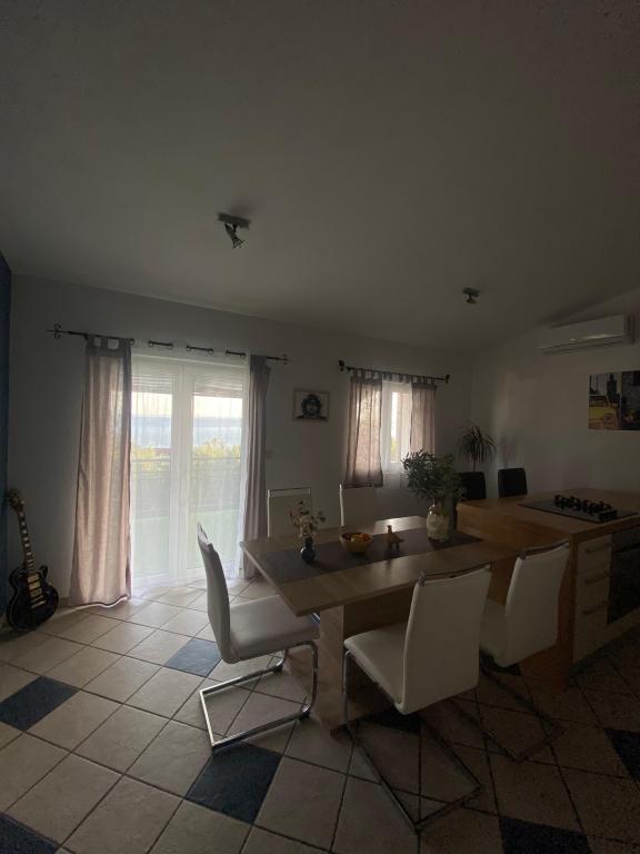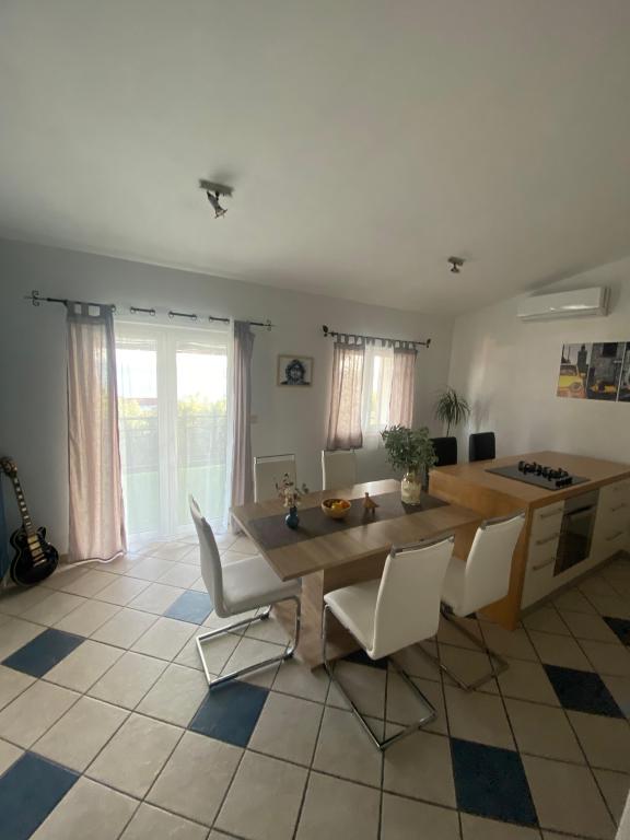 Nově zařízený apartmán na pláži, nedaleko od centra města, s krásnou terasou s výhledem na nedaleké ostrovy. V bezprostřední blízkosti plážový bar, pizzerie a rychlé občerstvení. Klimatizace, wi-fi, TV, myčka a pračka jsou jen některé z věcí, které apartmán nabízí. Dva pokoje s manželskou postelí, prostorný obývací pokoj a moderní kuchyně s ostrůvkem.