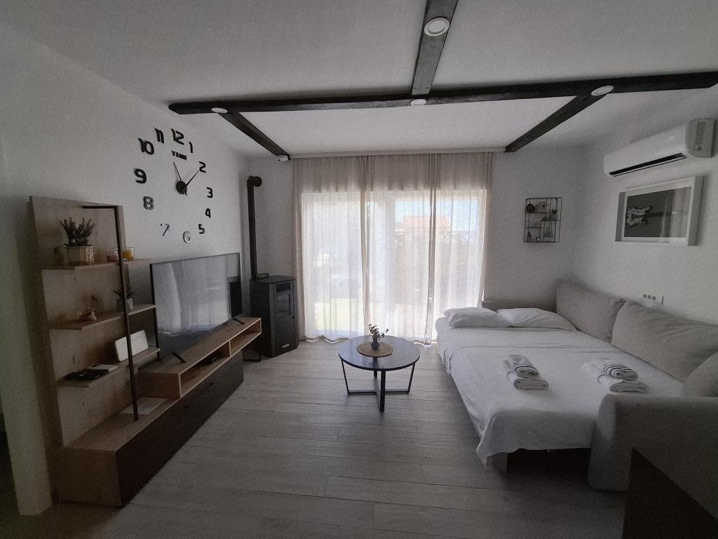 Dům je nově postavený, s kompletním vybavením. Jakmile tam budete, nebudete potřebovat auto. Dům se nachází u moře, přesněji na pláži 20 m odtud, jen pár kroků. Před domem je kavárna s občerstvením v našem objektu. Centrum je od apartmánu vzdálené 400 m, přesněji 3-4 minuty chůze. Vše máte na dosah ruky (kavárny, restaurace, obchody, stánky, pošta...). Apartmán se nachází v klidné části města.