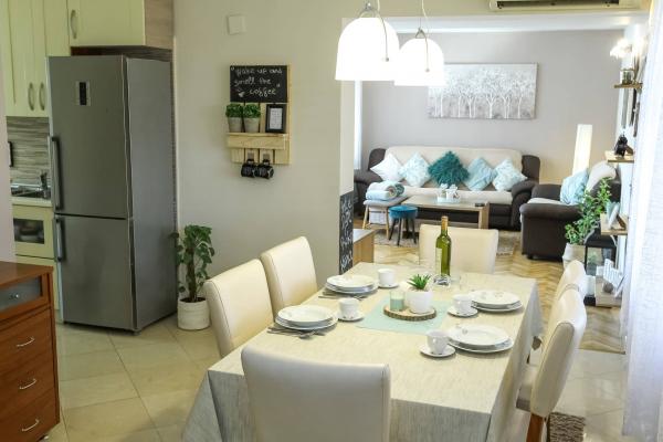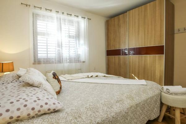 Vítejte v naší prostorné, nově zrekonstruovaný byt se nachází v ideální poloze v blízkosti veškeré občanské vybavenosti, ale v klidném prostředí, které bude vaše dovolená nezapomenutelné. Zavřete horní cíl - Zadar, Pula, Šibenik, Přírodní park Vranské jezero, Národní park Kornati, Krka, Plitvická jezera ... jsou takové, jaké malé městečko Pakoštane lákavou destinací pro rodinnou turistiku. Naše ubytovací zařízení se skládá z: dvě ložnice, obývací pokoj, kuchyň, jídelna, koupelna a prostorná terasa.