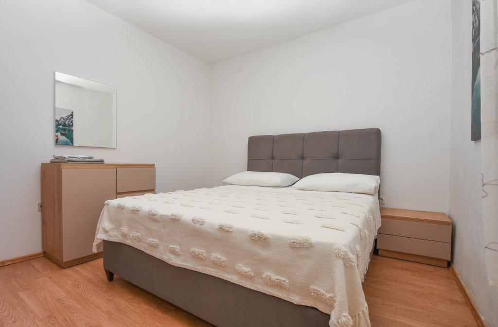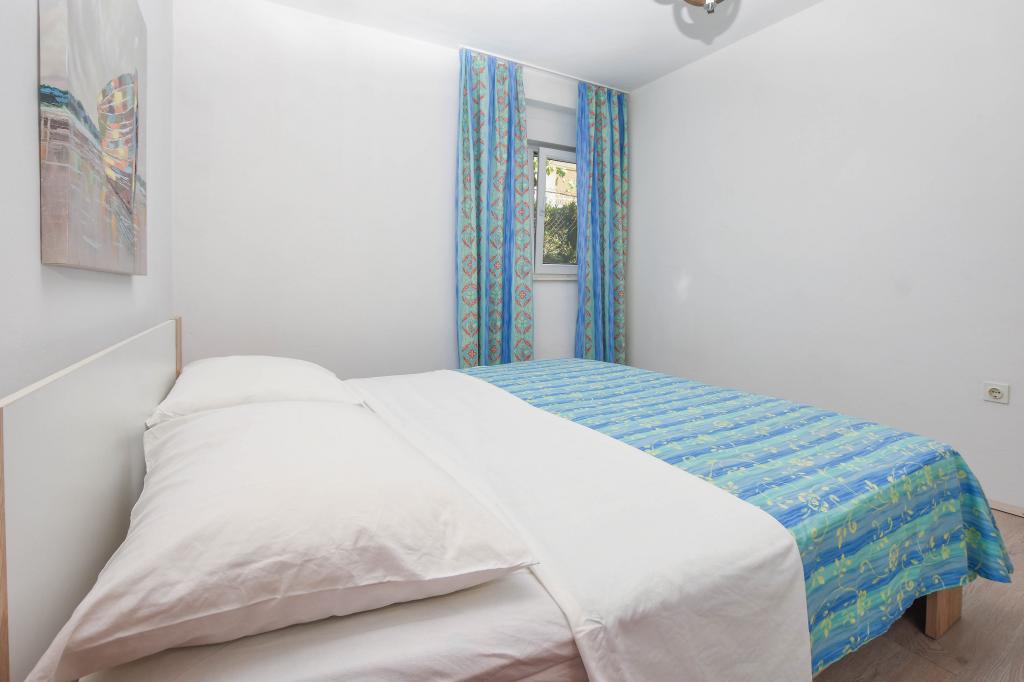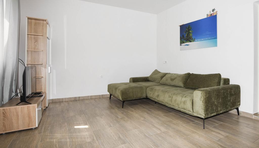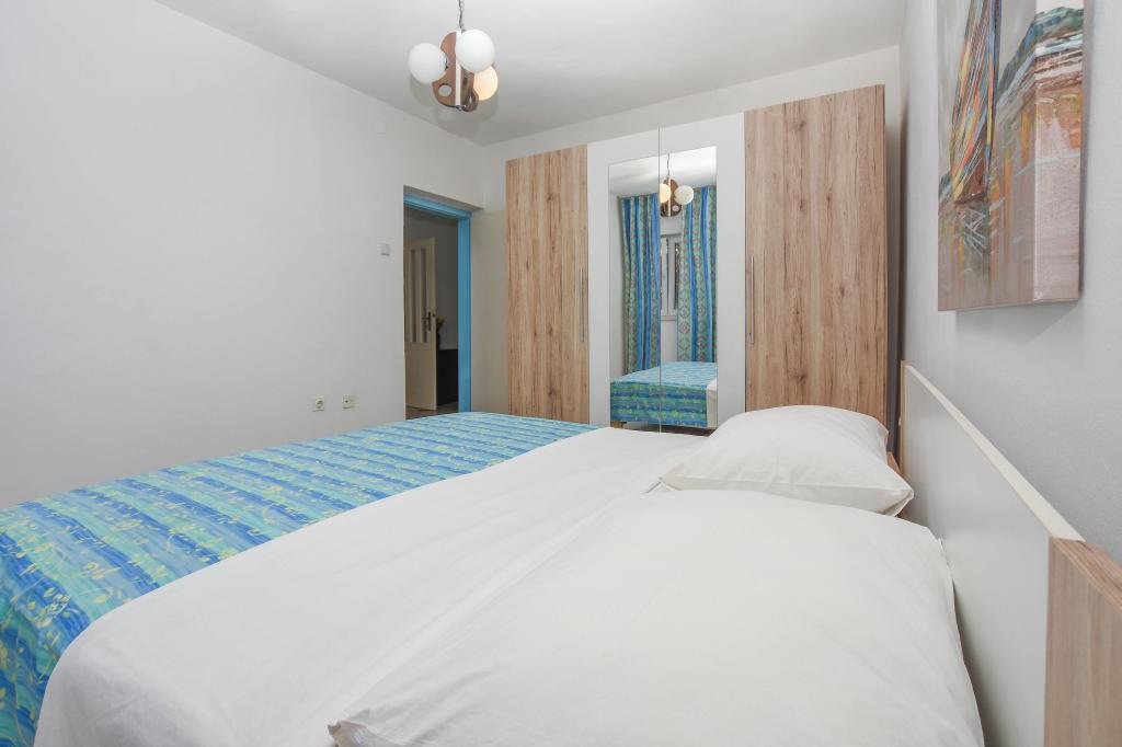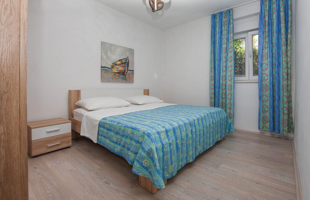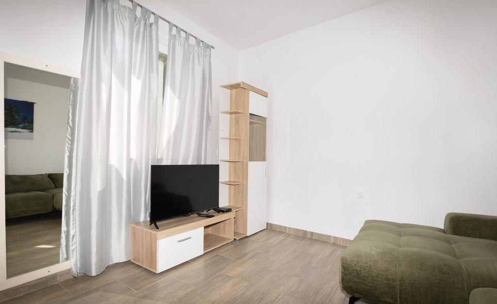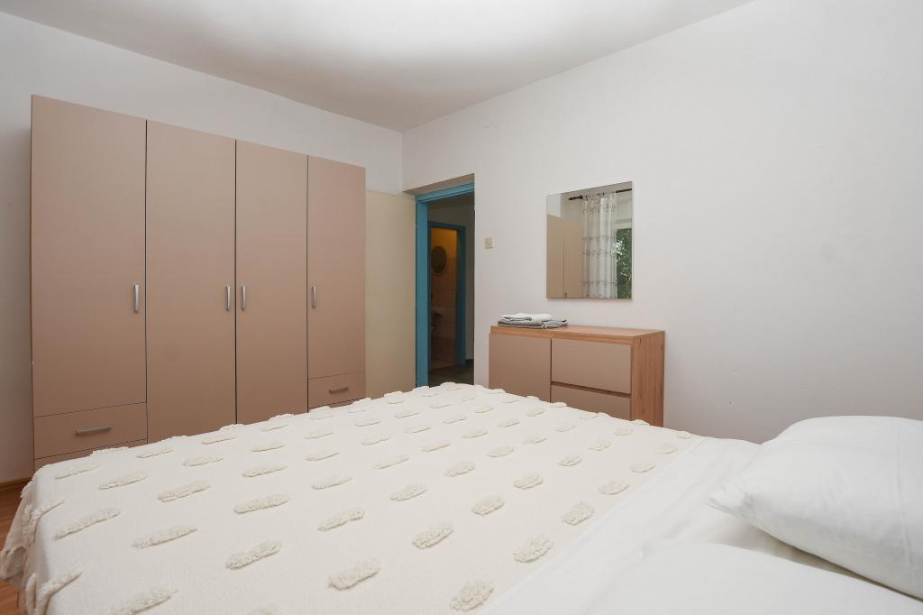 Apartmán se 2 ložnicemi, vybavenou kuchyní, obývacím pokojem, koupelnou se sprchovým koutem. 500 m od moře.