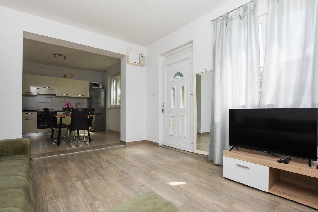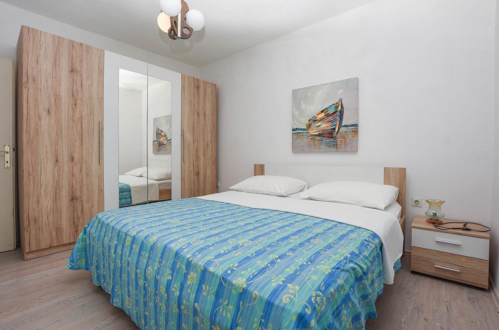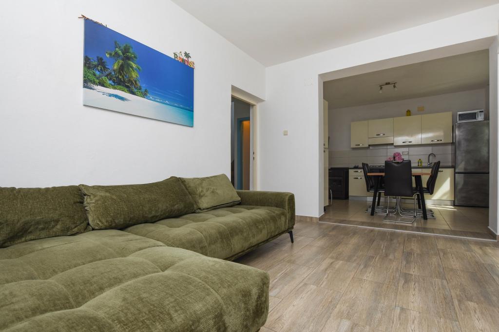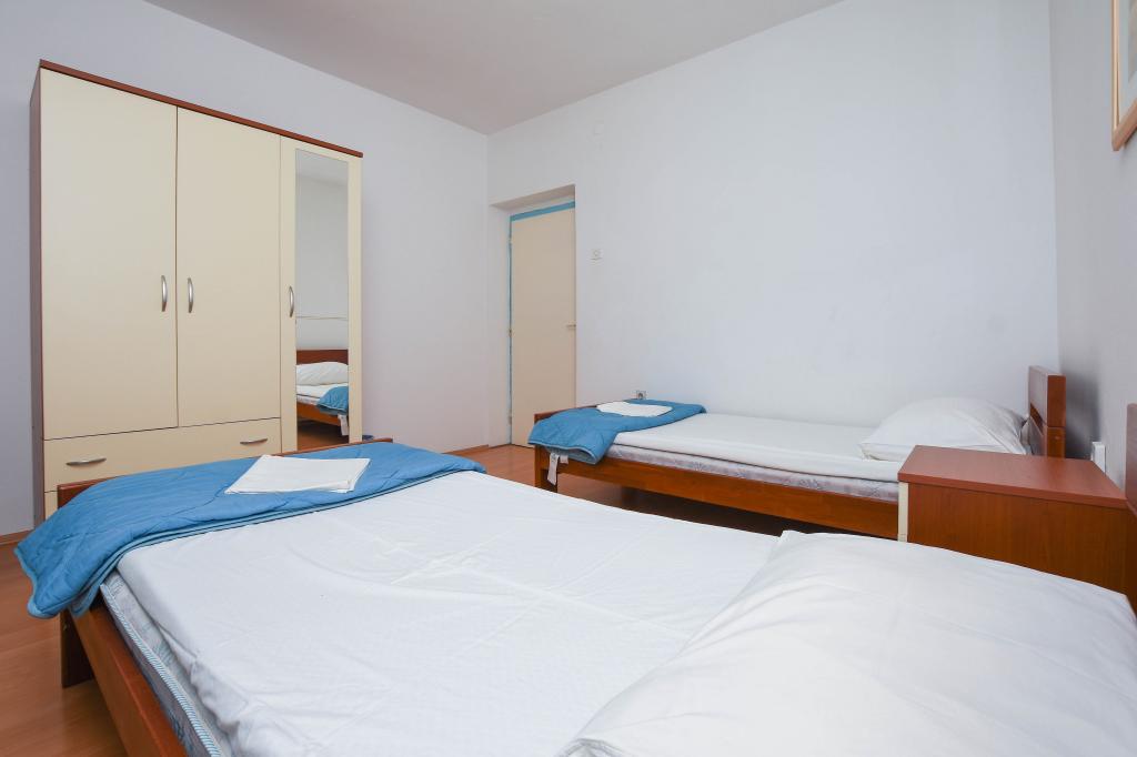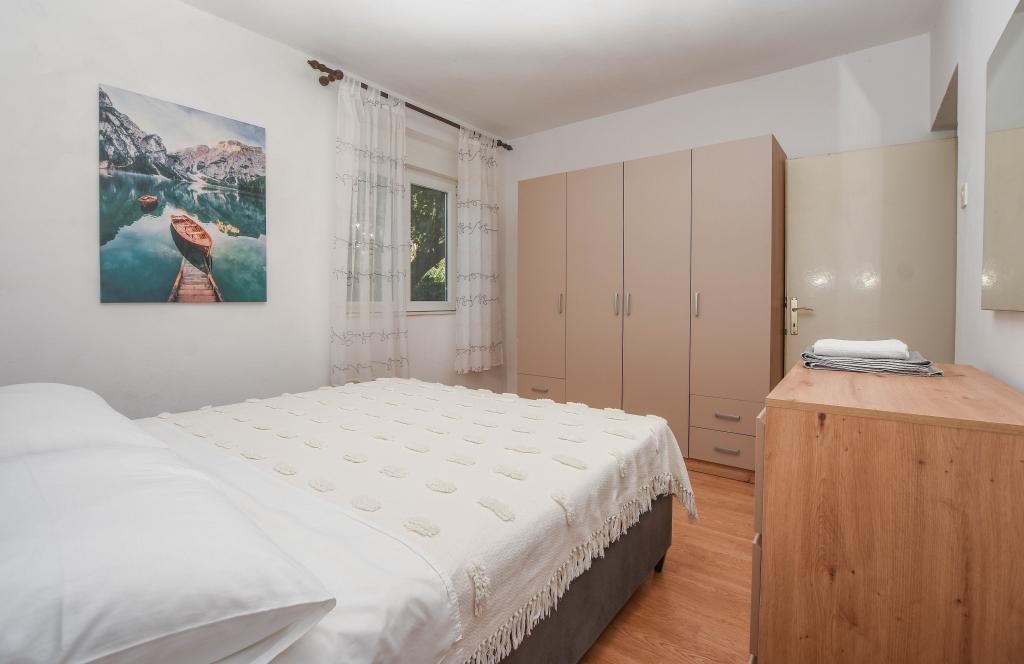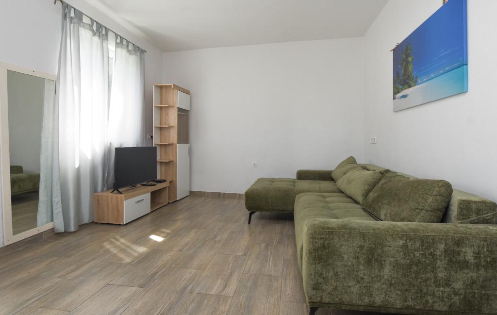 Apartmán se 2 ložnicemi, vybavenou kuchyní, obývacím pokojem, koupelnou se sprchovým koutem. 500 m od moře.