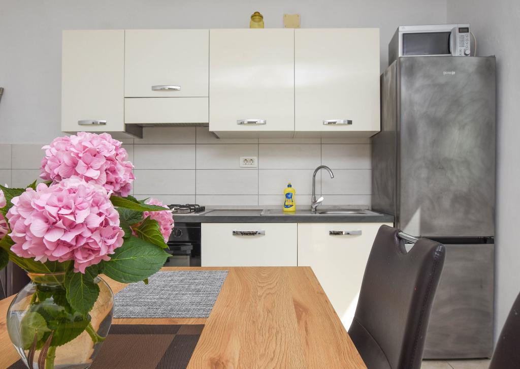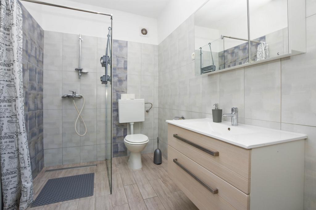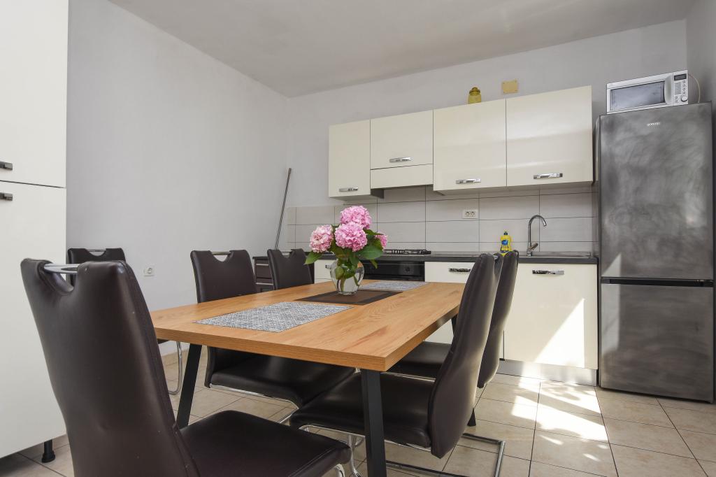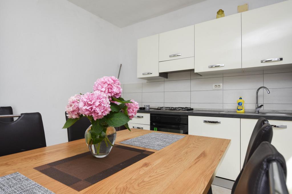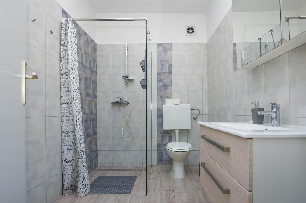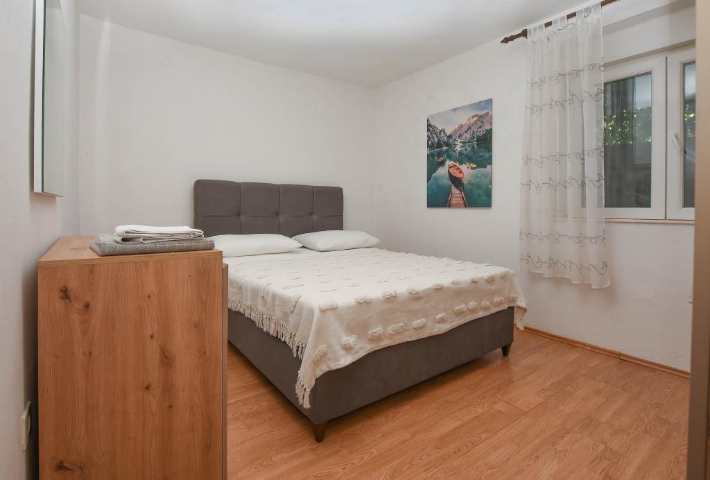 Apartmán se 2 ložnicemi, vybavenou kuchyní, obývacím pokojem, koupelnou se sprchovým koutem. 500 m od moře.