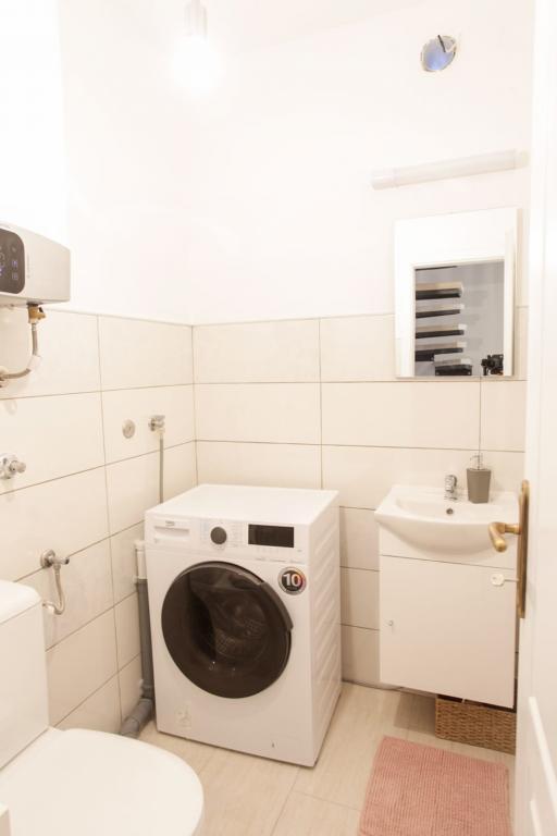 Pakoštane - Řadový dům 2 + 1 2+1 1 ložnice + 1 pohovka) (1 koupelna) (1 WC s pračkou/sušičkou) 2 klimatizace Vysokorychlostní internet ️ TV ️ Zvířata povolena Dětská vysoká stolička a postýlka na vyžádání ️ Plně vybavená kuchyň - mikrovlnná trouba, myčka, toustovač, varná konvice, kávovar Nesspreso pláž 50 m market 20 m 30 km od letiště v Zadaru plocha