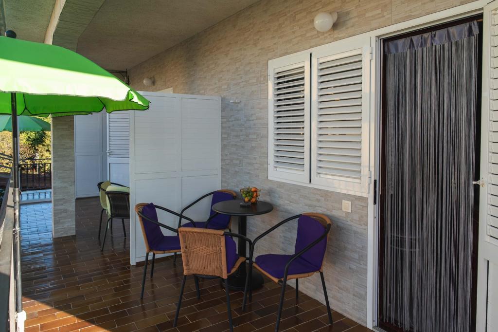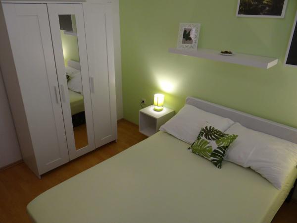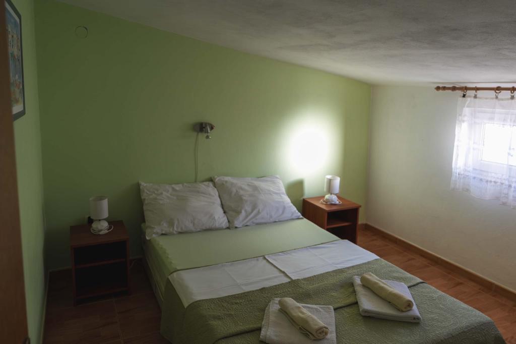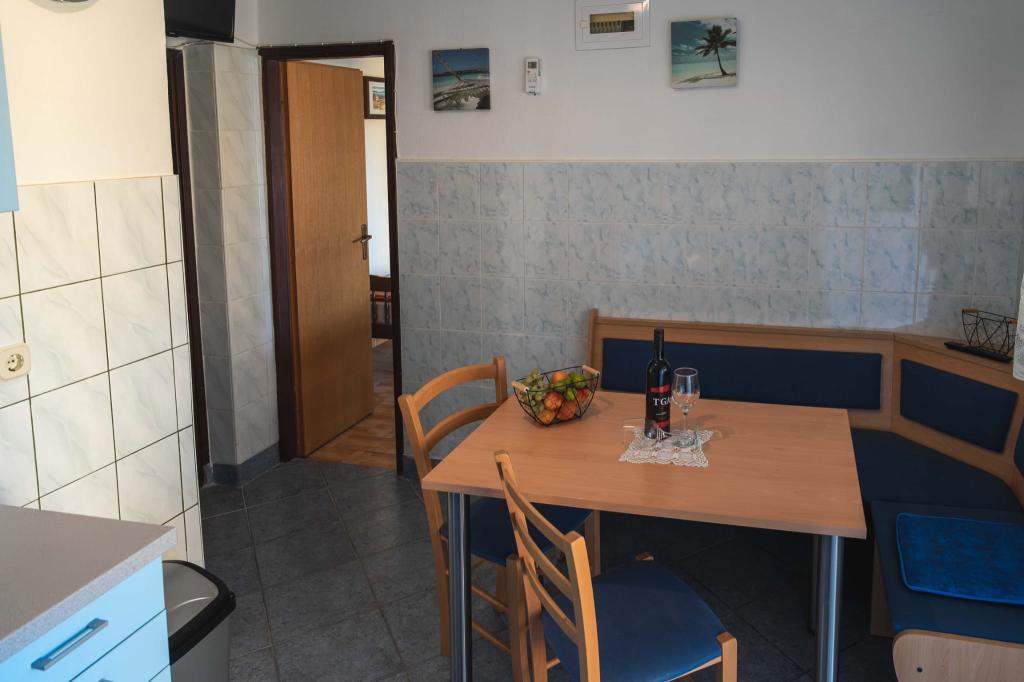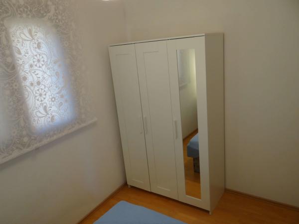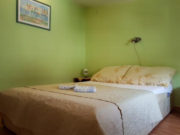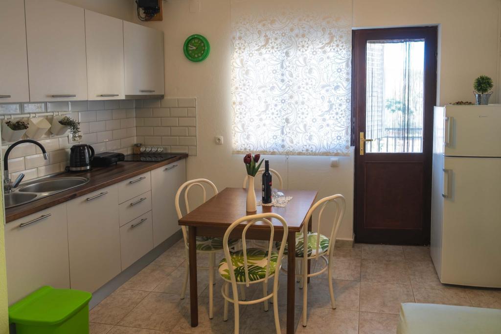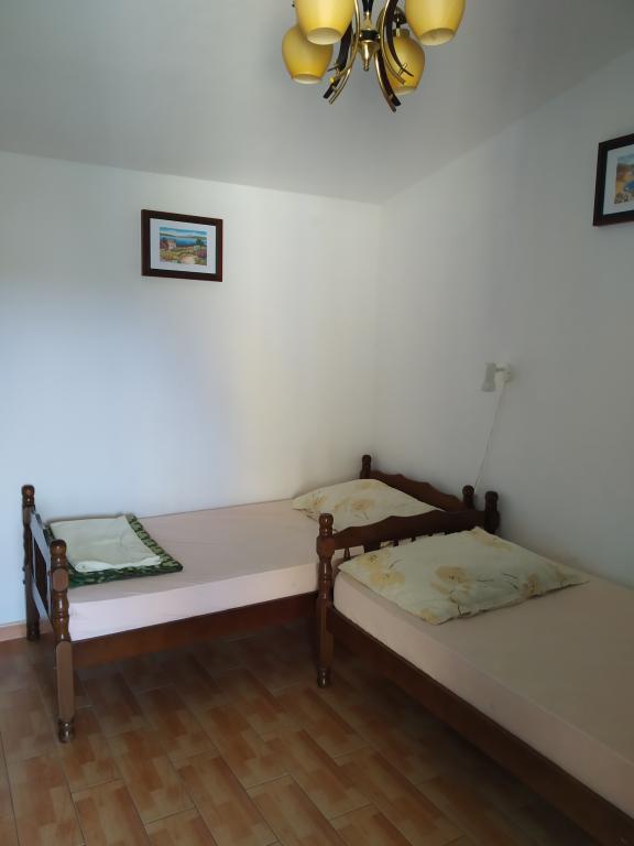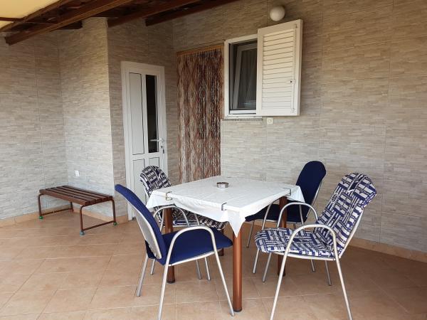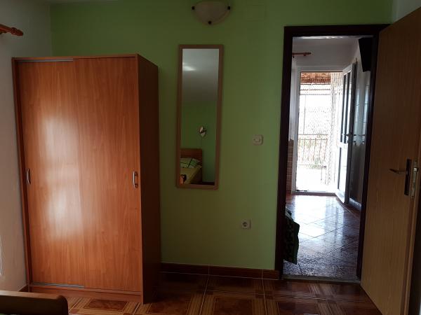 Čtyři APP (2 2) v klidné části Pakoštane. APP se skládá z ložnice, kde dvoulůžkové a třílůžkové komora. Obývací pokoj má postel (200x140), stůl se čtyřmi židlemi, a v jednom rohu kuchyně. Kuchyně se skládá z sudopra, pece kuhanhe s troubou a lednicí. Apartmán vlastní klimatizaci a TV. V přední části APP terasa se stolem a čtyřmi židlemi pro vaše aplikace. APP je v prvním patře soukromého domu. Dva apartmány se skládají ze dvou ložnic, kuchyně, jídelna a koupelna se sprchovým koutem. Apartmány mají velkou terasu s výhledem na moře, klimatizace. TV. Ve dvoře barbecue dětské houpačky a parkování v oploceném areálu.