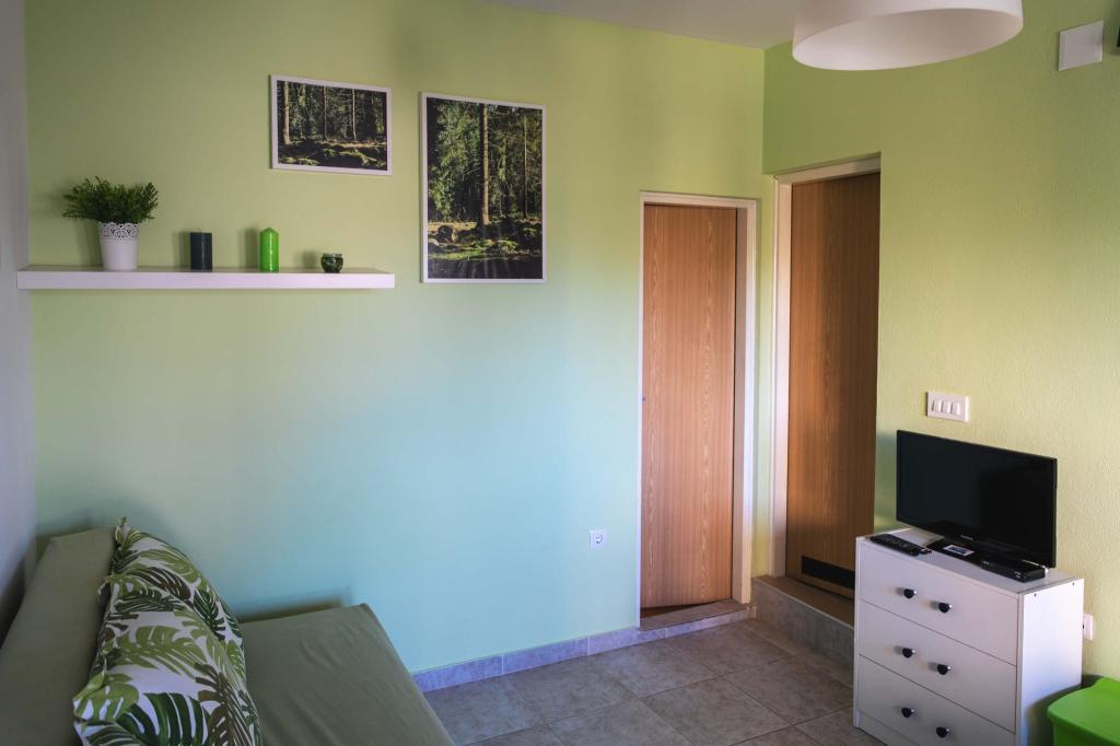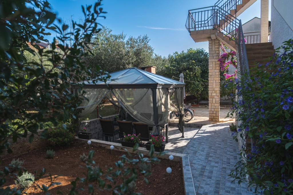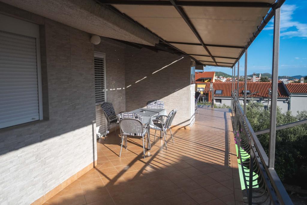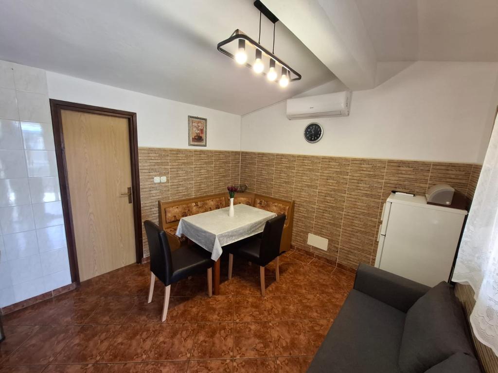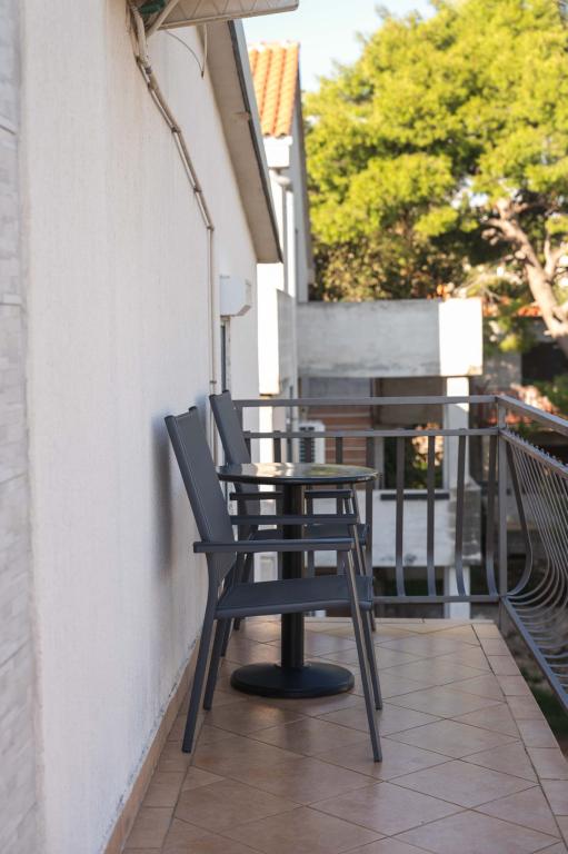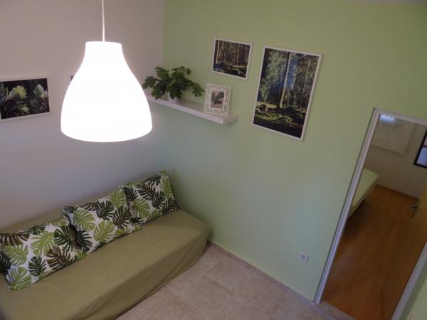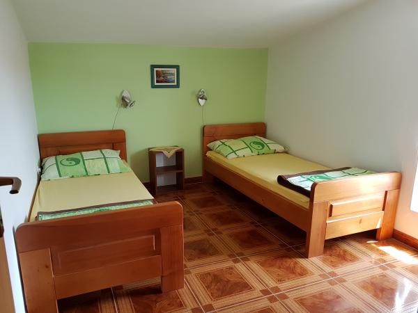 Čtyři APP (2 2) v klidné části Pakoštane. APP se skládá z ložnice, kde dvoulůžkové a třílůžkové komora. Obývací pokoj má postel (200x140), stůl se čtyřmi židlemi, a v jednom rohu kuchyně. Kuchyně se skládá z sudopra, pece kuhanhe s troubou a lednicí. Apartmán vlastní klimatizaci a TV. V přední části APP terasa se stolem a čtyřmi židlemi pro vaše aplikace. APP je v prvním patře soukromého domu. Dva apartmány se skládají ze dvou ložnic, kuchyně, jídelna a koupelna se sprchovým koutem. Apartmány mají velkou terasu s výhledem na moře, klimatizace. TV. Ve dvoře barbecue dětské houpačky a parkování v oploceném areálu.