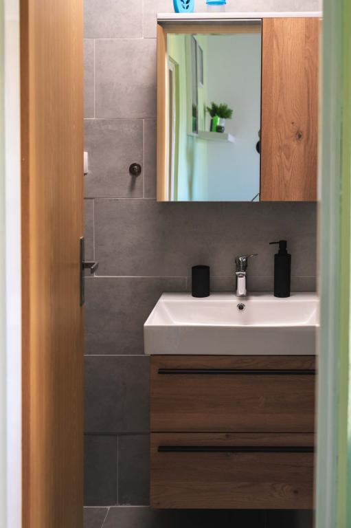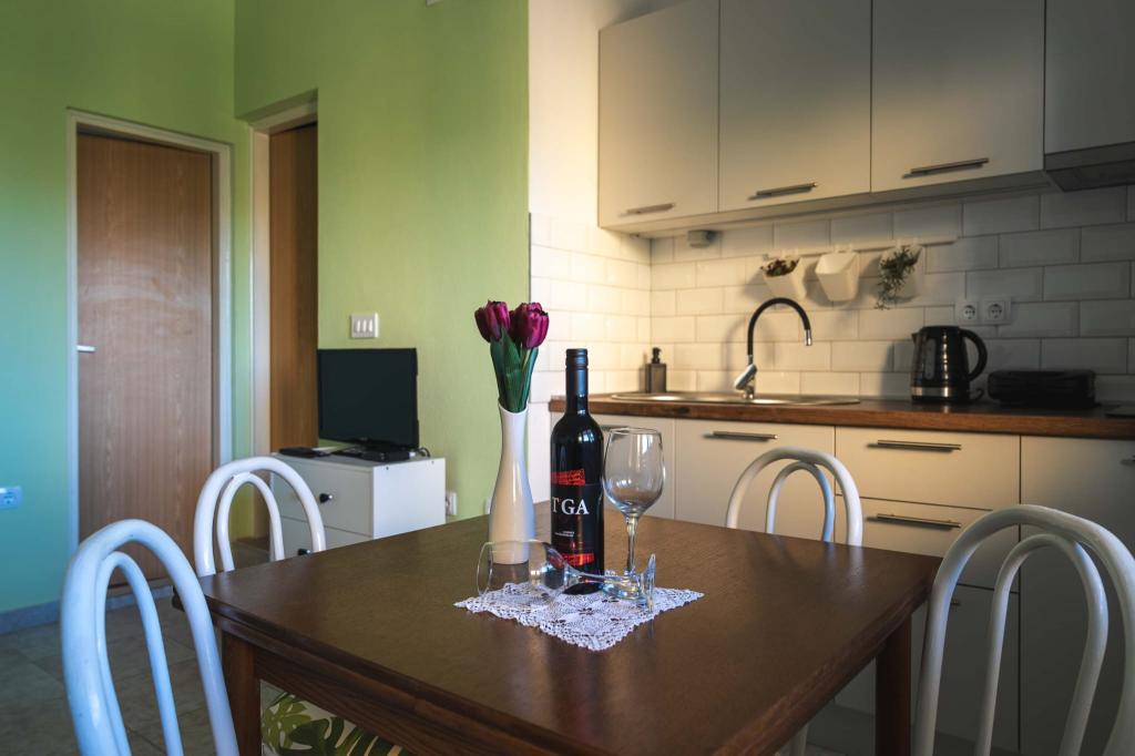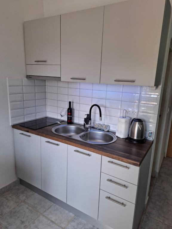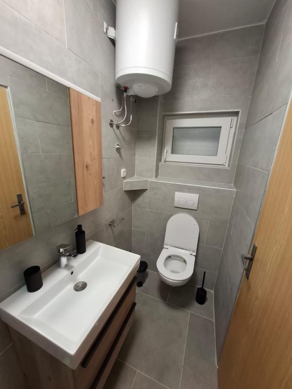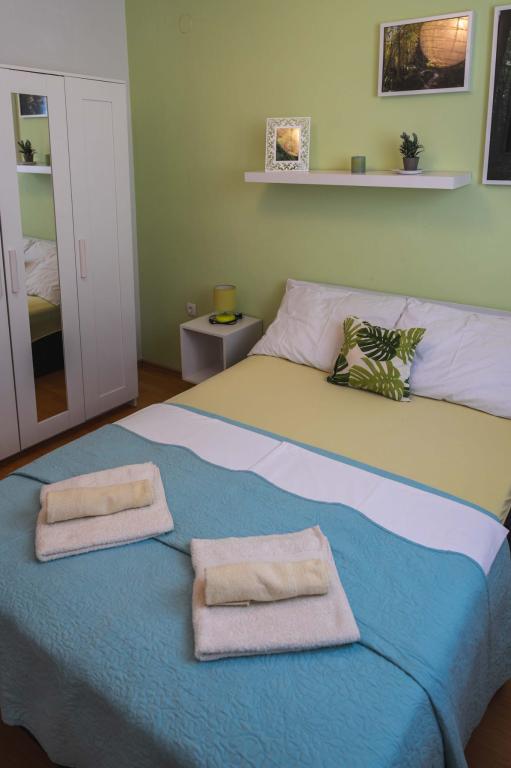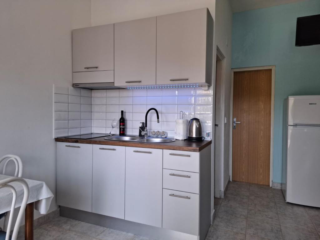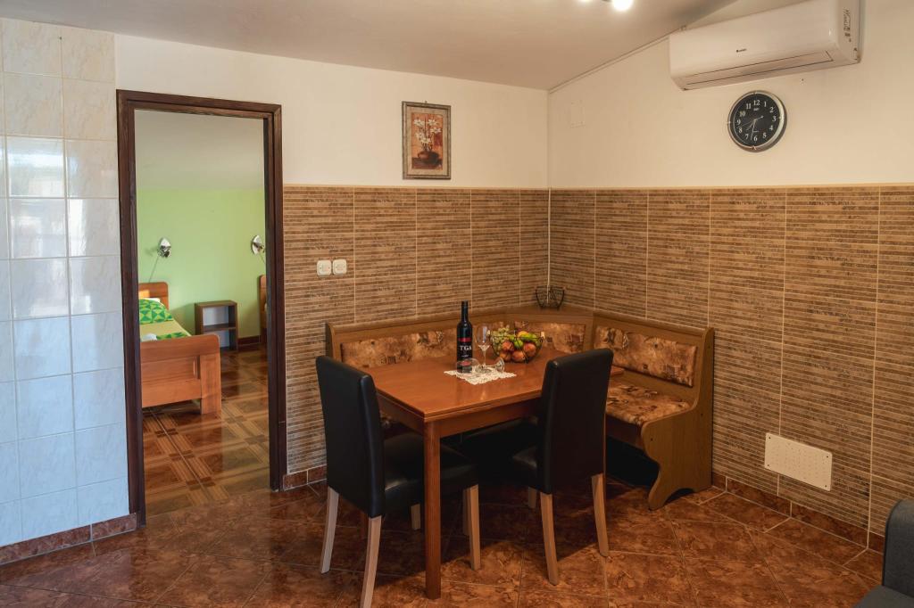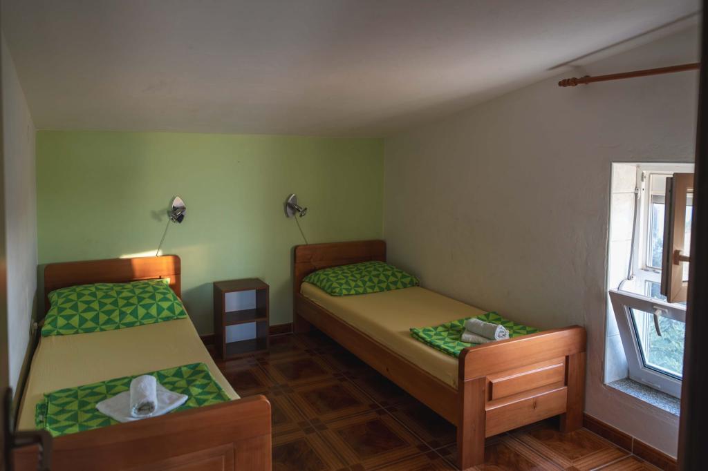 Čtyři APP (2 2) v klidné části Pakoštane. APP se skládá z ložnice, kde dvoulůžkové a třílůžkové komora. Obývací pokoj má postel (200x140), stůl se čtyřmi židlemi, a v jednom rohu kuchyně. Kuchyně se skládá z sudopra, pece kuhanhe s troubou a lednicí. Apartmán vlastní klimatizaci a TV. V přední části APP terasa se stolem a čtyřmi židlemi pro vaše aplikace. APP je v prvním patře soukromého domu. Dva apartmány se skládají ze dvou ložnic, kuchyně, jídelna a koupelna se sprchovým koutem. Apartmány mají velkou terasu s výhledem na moře, klimatizace. TV. Ve dvoře barbecue dětské houpačky a parkování v oploceném areálu.