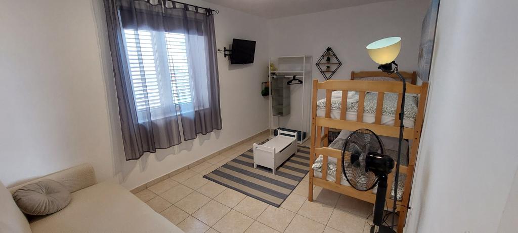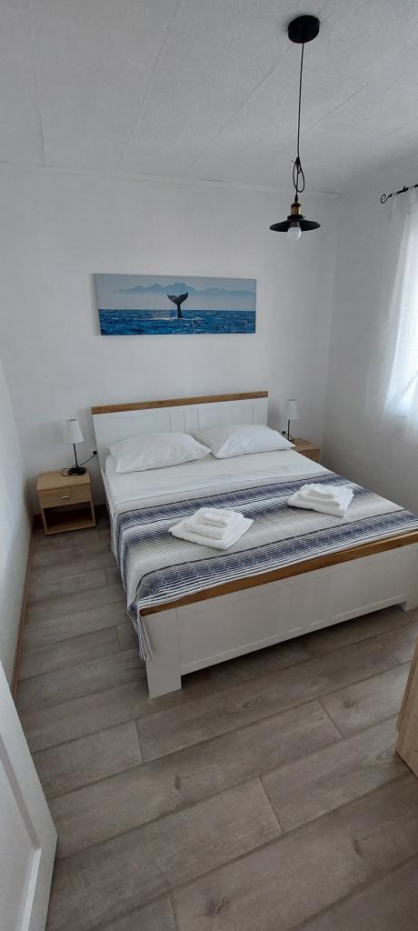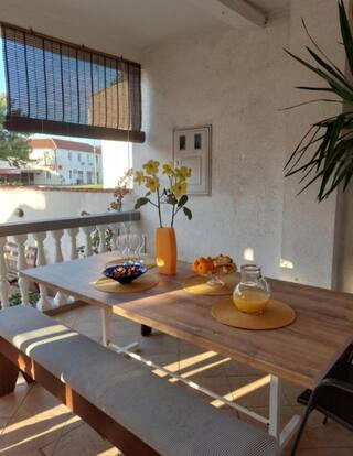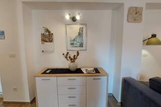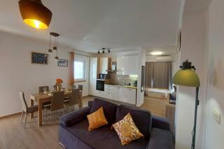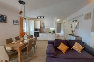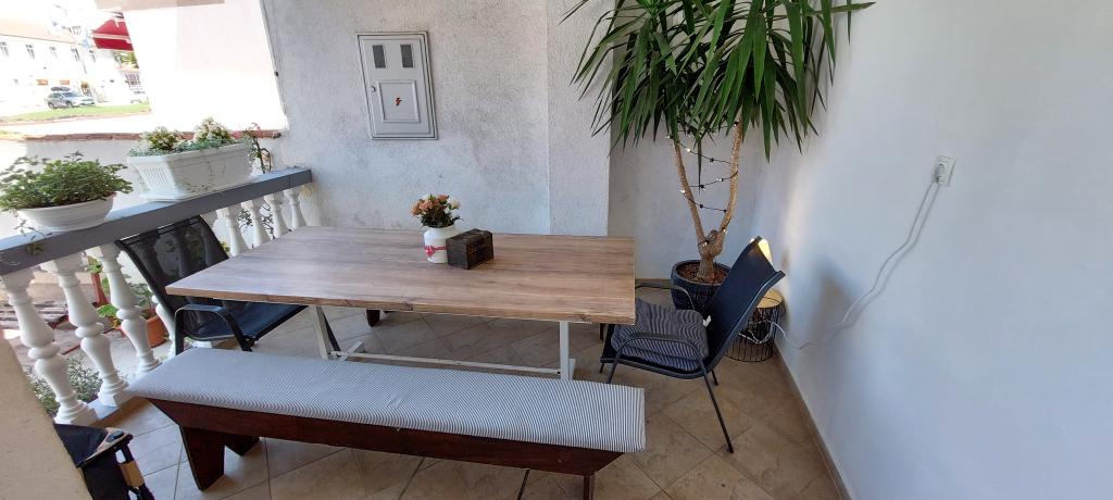 Nově zařízený byt, pohodlný a útulný. Nachází se v přízemí rodinného domu. Má dva východy, jeden je do dvora, kde je zeleninová zahrádka, kterou můžete volně využívat, nechybí ani gril se vším potřebným. Zařízení se nachází 3 minuty chůze od moře a centra města. V blízkosti budovy je obchod a kavárna. Byt má jednu ložnici, jednu koupelnu, velký obývací pokoj s rozkládací pohovkou, velkým stolem uvnitř a menším stolem pro venkovní posezení. Ručníky a ložní prádlo jsou zahrnuty v ceně. Skvěle vybavená kuchyně, toustovač, kávovar, varná konvice, vše potřebné k vaření a veškeré potřebné nádobí na grilování, gril je na dvoře. Parkování je zdarma a nachází se v budově. Veškeré další informace poskytujeme na vaši žádost.
