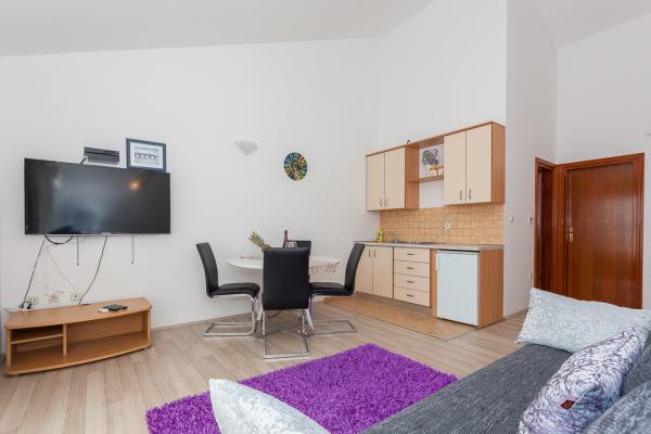 Velký, čistý a dobře zařízený byt na výjimečném místě. V blízkosti - není třeba používat auto, několik krásných pláží, obchody 5 m daleko, kavárny, restaurace a vlastní parkoviště přímo před apartmánem. Špičkové vybavení apartmánu - vše na vaření, velká TV s dostatkem obsahu, WiFi, klimatizace, velký balkon s markýzou a krásný výhled na moře, které díky své poloze není horké a lze užívat po celý den. K tomu všemu je přivítání, vřelost a dostupnost majitele apartmánu zárukou ideální dovolené. Všechno nejlepší a určitě se vrátíme každý rok.