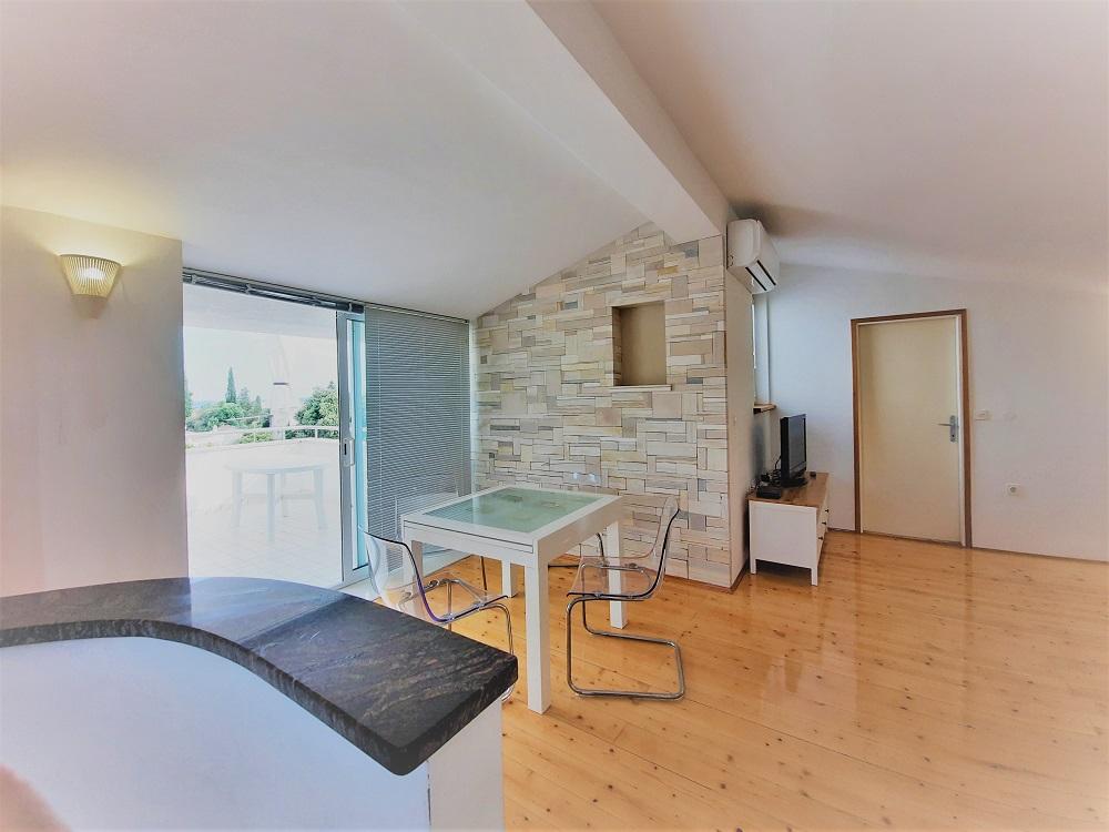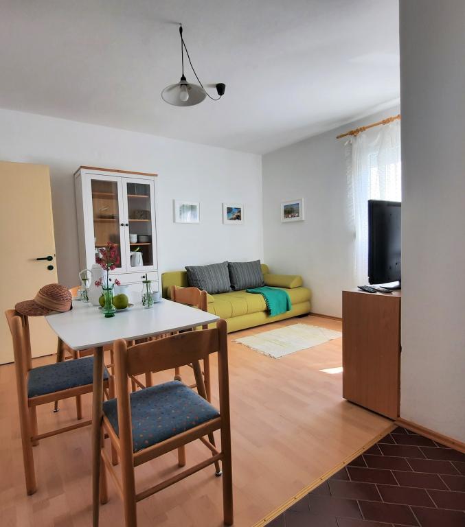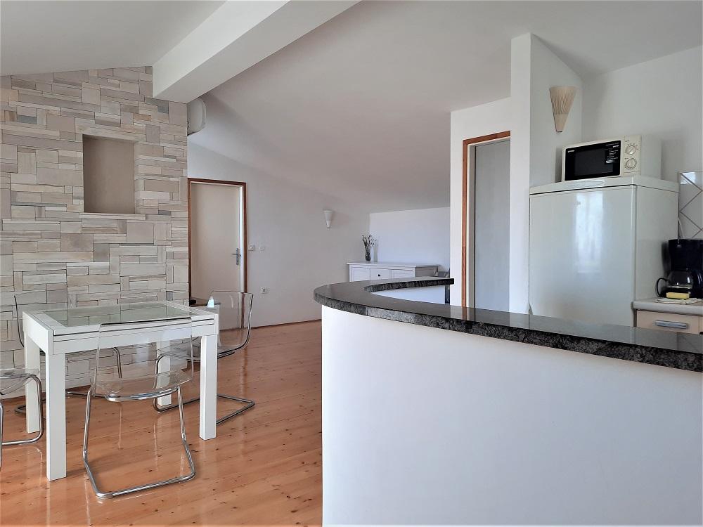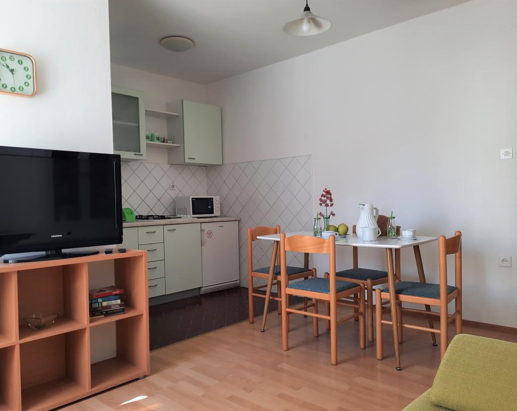 Bydleli jsme v bytě v přízemí, A 6+2. Byt byl velmi prostorný a i přes vedro je v bytě poměrně příjemně. Měli jsme vše, co jsme potřebovali, zajištěné parkování ve stínu ve dvoře domu. Nejlepší na tom byla prostorná terasa, na kterou se dostanete z kuchyně a máte zde veškeré soukromí, které potřebujete, a vedle ní je další menší balkon, na který je přístup z jedné z ložnic. Hostitelé jsou vstřícní, příjemní a k dispozici pro všechny dotazy. Pláž nedaleko s procházkou ve stínu, což pro nás bylo velmi důležité kvůli malým dětem. Nedaleko není ani krásná pláž Pilatuša, výborná pro pobyt s dětmi, spousta stínu.