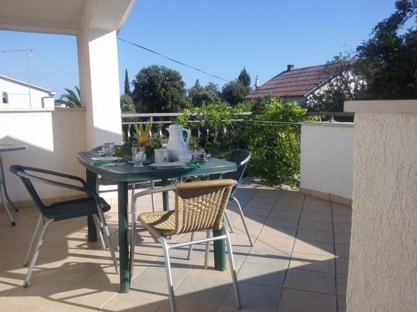 Krásný prostorný apartmán. Ideální poloha - klidné místo dál od silnice. V blízkosti pláže, výborné rybí restaurace, obchodu s potravinami, pekárny, ovoce a zelenina. Příjemní a ochotní majitelé. Dobrá dostupnost od letiště ZADAR. Možnost parkování auta. Úschova kola. Nádherná zahrada. Možnost grilování. Klidné místo pro aktivní dovolenou. Výlety na Kornati, Krka, Plitvice. Mohu jen doporučit :-)))