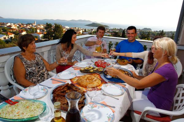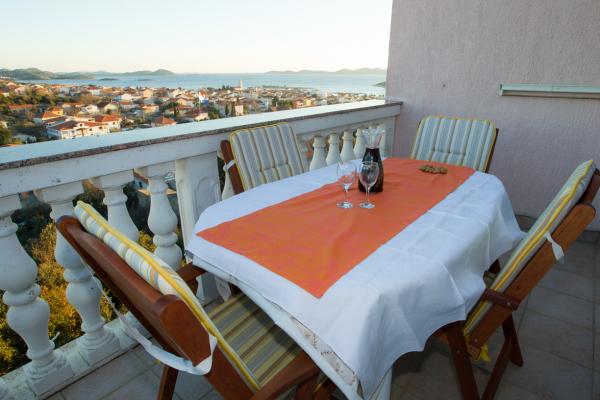 Rodinný dům v klidné lokalitě s nádherným jedinečným výhledem na moře a Národního parku Kornati na jedné straně, a na druhé straně Přírodní park Vranské jezero.