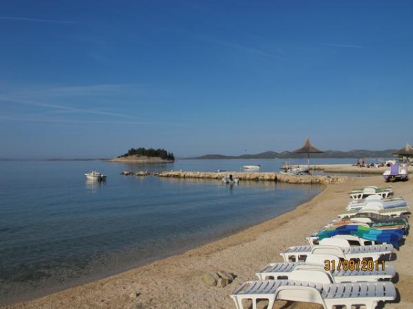 Po dobu tří let přišla ze Slovinska. 20 m od moře, krásné pláže, snadný přístup k moři, ubytování oplocený, dostatek prostoru a dětské hřiště, odstín, velmi čistý, žádné davy na pláži. Slunečníky, lehátka, šlapadla, člun, má všechno. Personál profesionální, vždy ochotni pomoci s služeb, které přímo nesouvisí s jejich ponudu.Trgovina pro potraviny 150 m, 50 m k pláži kavárna, pekárna 30 m. Žádný hluk, tiché, ale pokud chcete bavit, je zde spousta kaváren - 300m. Nejlepší pro rodinu! Milujeme Pakoštane!