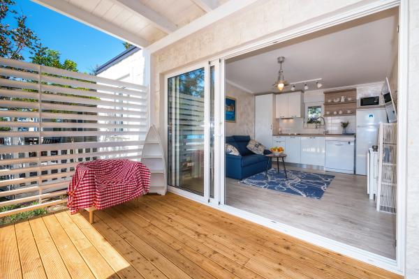 Přišli jsme sem v červnu, na doporučení našich přátel, nejistí, zda toto místo bude vyhovovat našim potřebám. Jak se ukázalo, je to perfektní! Apartmány jsou velmi pěkné a čisté, celá budova je dobře udržovaná. Přijeli jsme s tříletým dítětem, takže oplocené hřiště s atrakcemi pro malé děti se ukázalo jako spása. Rádi trávíme čas u moře a tady je moře několik metrů, navíc voda není tak hluboká, že je ideální pro malé děti. Pláž je pokryta malými oblázky. Majitelé bytů jsou velmi pěkné a dostupné po celou dobu. Výsledkem je, že jsme tady v září, ale tentokrát ve větší skupině.