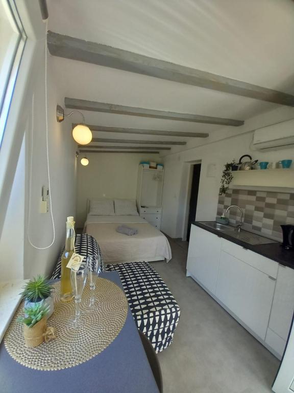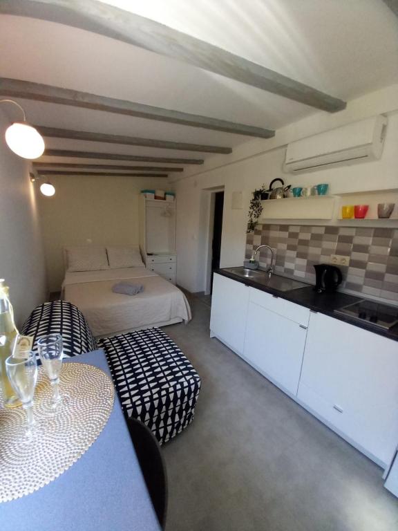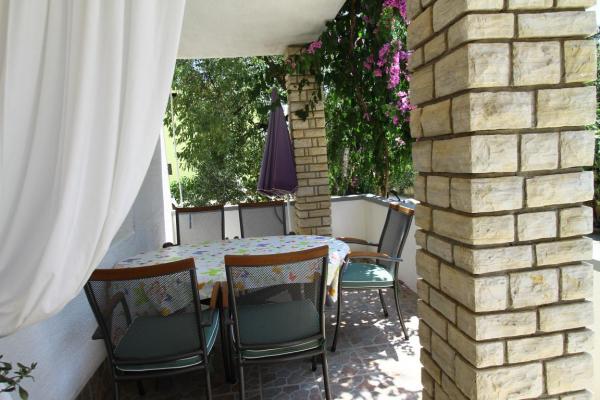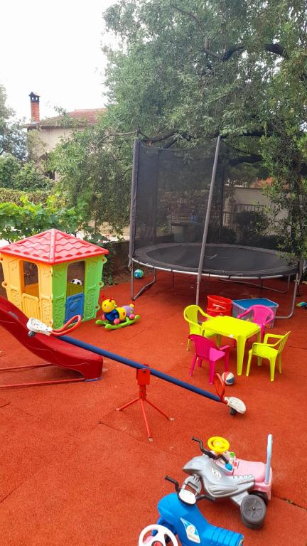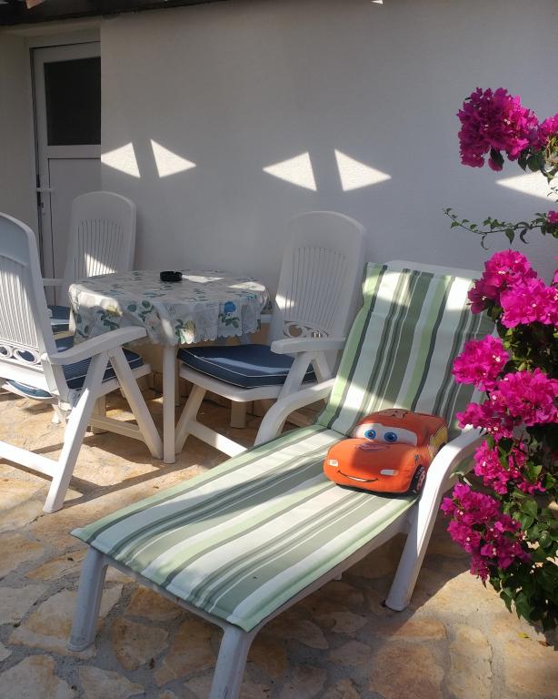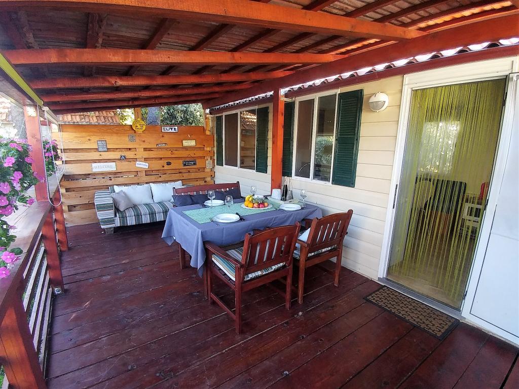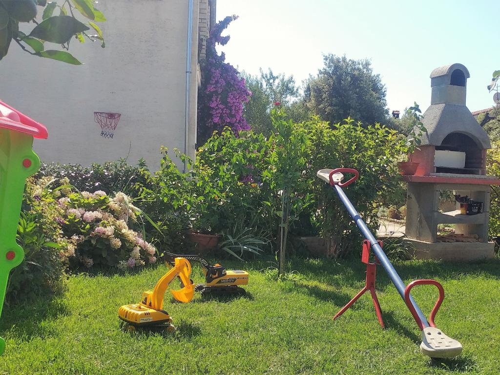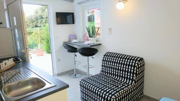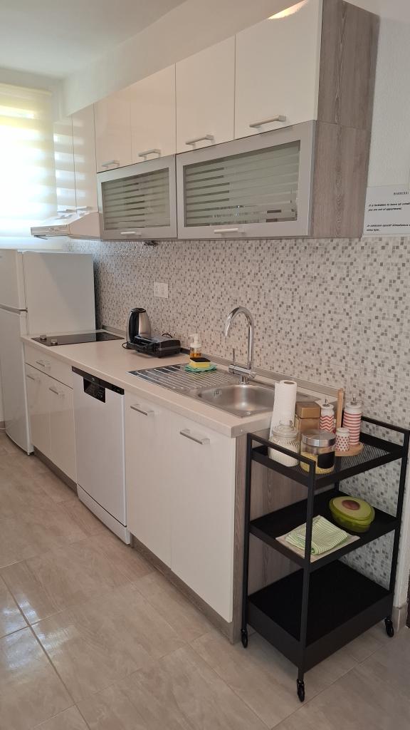 Apartmány A4 1 se nacházejí v přízemí rodinného domu a apartmán A2 2 ve stáji. Mobilní dům se nachází na stejné adrese jako apartmány a má velkou terasu a hřiště v přední části. Apartmány se nacházejí v klidné ulici, 3-4 minuty chůze od pláže a centra.