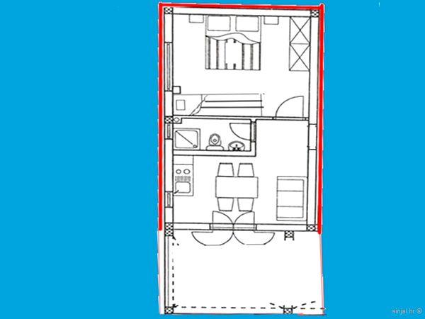 Apartmány Sinjal se nacházejí v rodinném domě, přímo u krásné písečné pláže. Všechny apartmány v nabídce mají vlastní terasu s výhledem na moře. Užijte si krásný výhled na nedaleké ostrovy a krásné Jaderské moře. Nacházíme se asi třicet metrů od pláže a asi 200 m od centra města. V olivovém háji před domem je parkoviště a gril. Všechny apartmány jsou klimatizované a mají bezplatný internet. Mobilní domy se nacházejí v olivovém háji před domem.