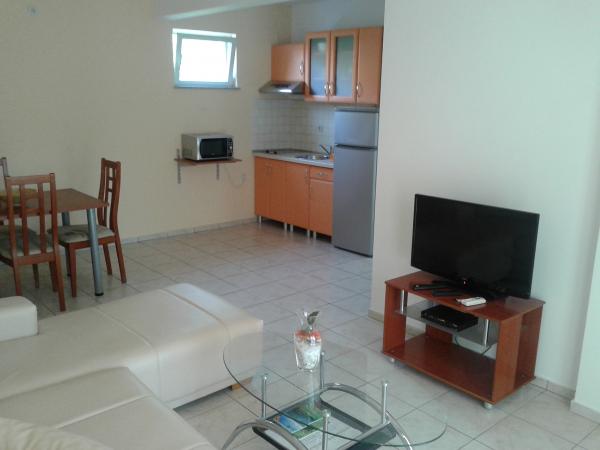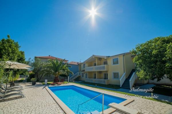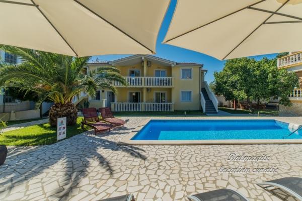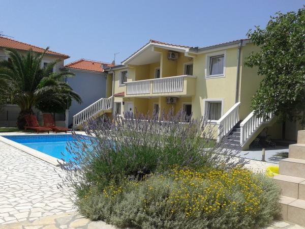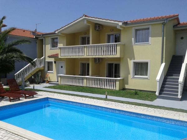 Moderně vybavené apartmány v klidné části Pakoštane, v blízkosti veškeré občanské vybavenosti. Velká zahrada s bazénem a dalším vybavením činí toto místo ideálním pro rodinnou dovolenou. Všechny apartmány jsou stejně vybaveny a liší se pouze barvou.