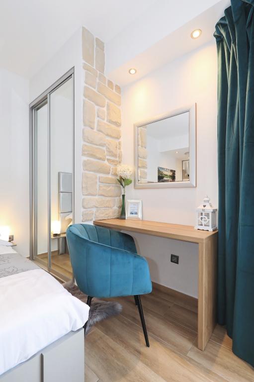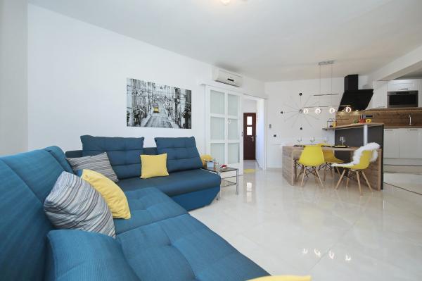 Apartmán u moře - první kategorie. Náš pobyt jsme si opravdu užili, cítili jsme se jako doma, s rozdílem, kromě moře. Hostitelé jsou velmi přátelští, vždy tu pro cokoli, co potřebujete. Byt byl zcela nově zařízený a zrekonstruovaný, prostorný a luxusní a velmi blízko pláže, stačí sledovat cestu a jste tam. Užili jsme si hlavně děti, protože měly pláž, zábavu a pokoj na dosah ruky. Parkování je ve dvoře, přímo před objektem a vše je velmi dobře dostupné pěšky (pláž, obchod za rohem, pekárna přes ulici, dětské hřiště viditelné z balkonu atd.). Internet fungoval bezchybně, takže práce z domova (čti dovolená) není problém. Byli jsme rodina (2 plus 3 děti). Bylo to pro nás perfektní a my se vrátíme na naši příští dovolenou.