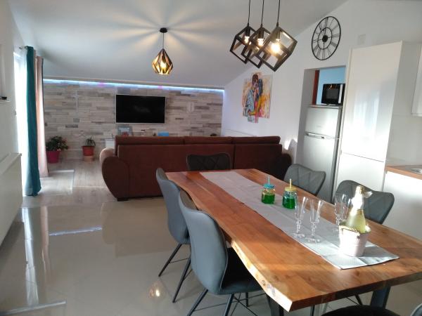 Rodinný dům v jejichž držení je 7 apartmánů. Byt A6 se nachází ve druhém patře budovy, dost ubytovat až 8 osob. Skládá se ze tří velkých ložnic, velký obývací pokoj, jídelna a kuchyň s velkou koupelnou. K dispozici jsou dvě velké terasy. Byt je vybaven klimatizací, TV, bezdrátové připojení, mikrovlnná trouba. Mobilní domek MH5 je vhodný až pro 7 osob. Skládá se ze dvou ložnic, obývacího pokoje, kuchyně, dvě koupelny, velkou terasu. Je vybaven klimatizací, TV, wifi. Možnost parkování před domem. Byt A5 je vhodný až pro 5 osob. Skládá se ze dvou ložnic, jídelna, kuchyně, jedna koupelna, terasa. wifi. Byt má samostatné zařízení Villa Jadranka. Apartmány A3 a B3 jsou umístěny v prvním patře domu. Vhodné pro pobyty tři osoby. Apartmány A2 a B2 jsou vhodné pro 2 osoby. Parkování je možné v rámci Villa Jadranka. V blízkosti pekárny, pěstitele ovoce a restaurací