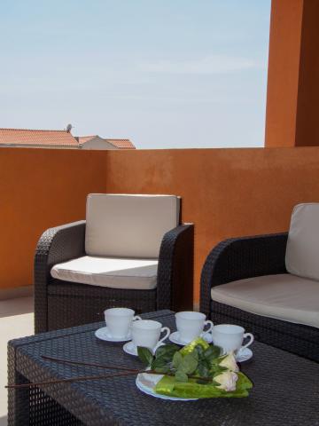 Okouzlující a vybavené apartmány s velkými terasami, které se nacházejí v centru města Pakoštane, s vlastním vstupem na hlavní pláž a dalším obsahem pro hosty (gril, venkovní terasa, parkoviště).