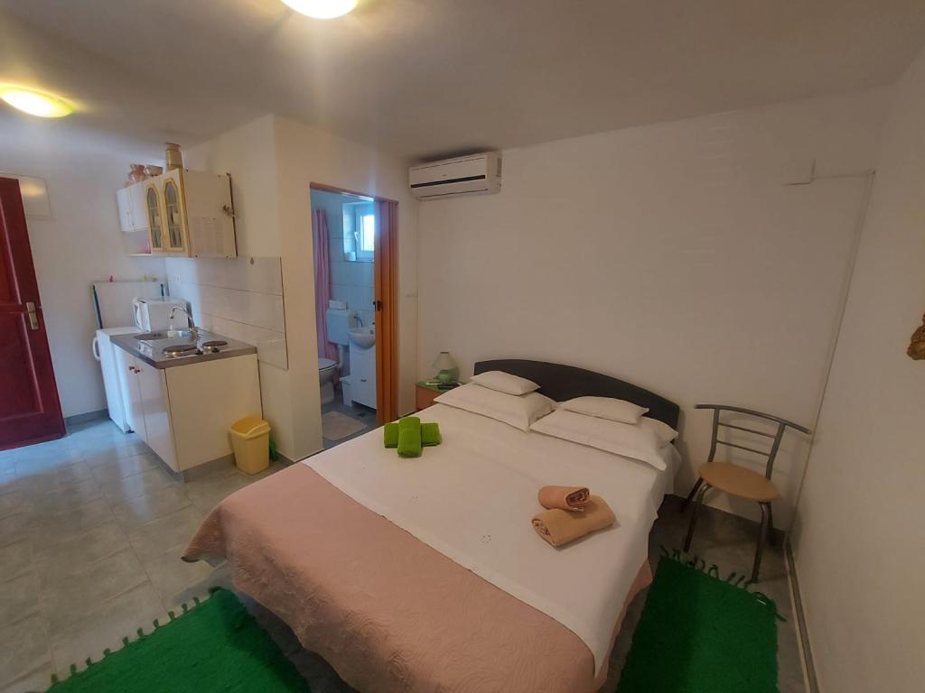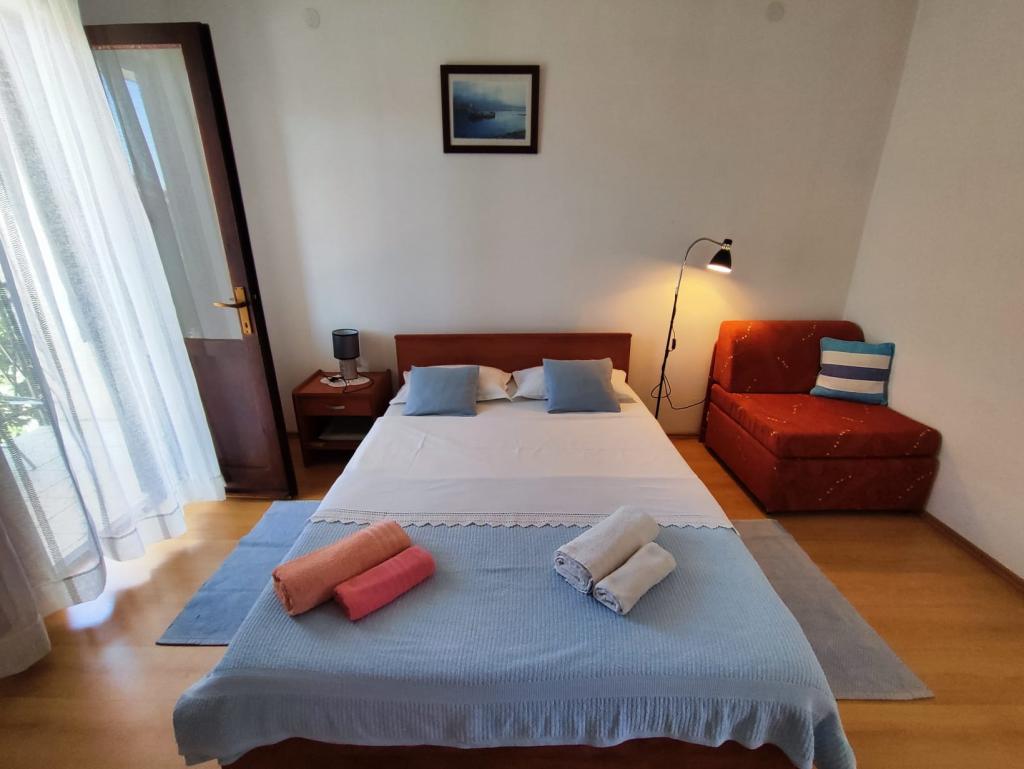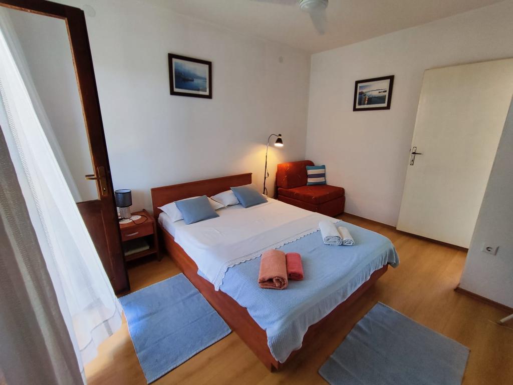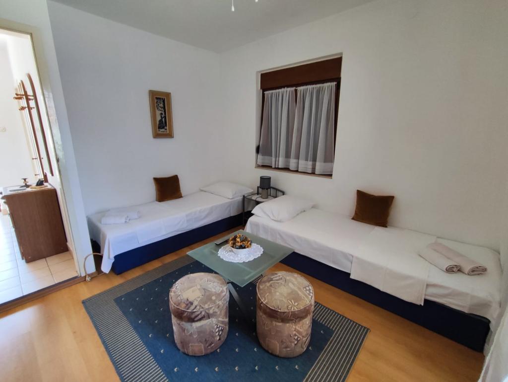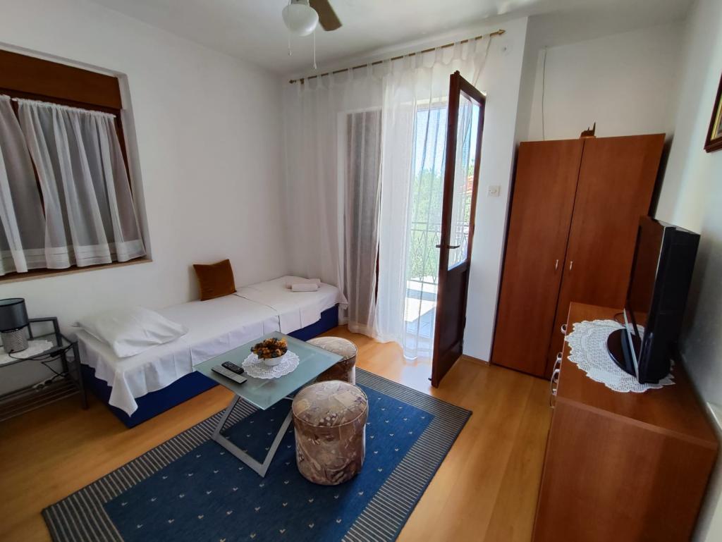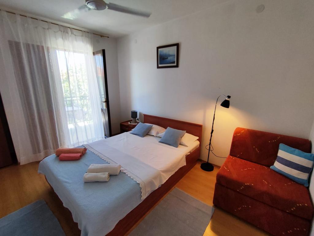 Rodinný dům se nachází na klidném místě v blízkosti pláží a centra města. Nabízí komfortní ubytování v apartmánu pro 4 až 5 osob a studiu pro 2 osoby a dítě (do 12 let). Nachází se pár minut chůze od centra města a pláží. V příjemné atmosféře můžete strávit dovolenou s rodinou nebo jako pár a užívat si letních večerů na balkonech a krásné zahradě.