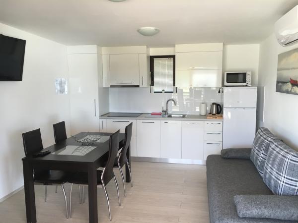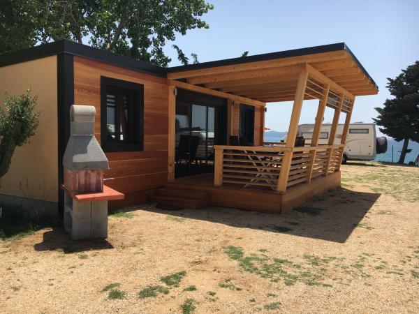 Mobilní dům k pronájmu se nachází v klidné části Pakoštane se nachází přímo u moře. Je to jen 5 minut chůze od centra města. Dům je kompletně a moderně zařízený a skládá se ze dvou ložnic, kuchyně, obývací pokoj a koupelna. To má terasu 20m2 s výhledem na moře a okolní ostrovy. Mobilní dům je klimatizovaný, má TV a připojení na internet, ložní prádlo, nádobí, ručníky, mikrovlnná trouba, gril ... Tuto sezónu nabízíme nový mobilní domov 40m2 sestávající se ze dvou ložnic, a každý pokoj má vlastní sociální zařízení. Chata má prostorný obývací pokoj a kuchyň, terasa 20m2 má také výhled na moře.