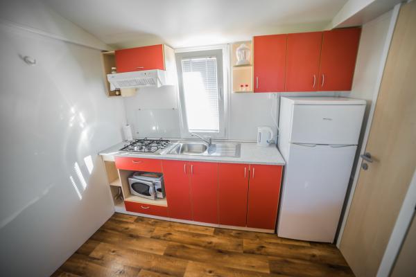Mobilní domy k pronájmu se nacházejí v klidné části Pakoštane, jen 40 m od moře. Jsou 5 minut chůze od centra města. Chatky jsou moderně zařízené, skládají se ze 2 ložnic, kuchyně s obývacím pokojem a koupelnou (sprcha/WC), dřevěné terasy 18m2 s připojeným posezením a výhledem na moře a sousední ostrovy. Mobilhomy jsou klimatizované, mají TV/sat a internet, ložní prádlo, nádobí, ručníky, gril, varnou konvici, mikrovlnnou troubu a mixér, sítě proti hmyzu. K dispozici je parkovací místo. Apartmány se také nacházejí u moře v rámci kempu. jsou moderně zařízené se soukromou venkovní terasou a jsou vybaveny vším pro příjemný pobyt.