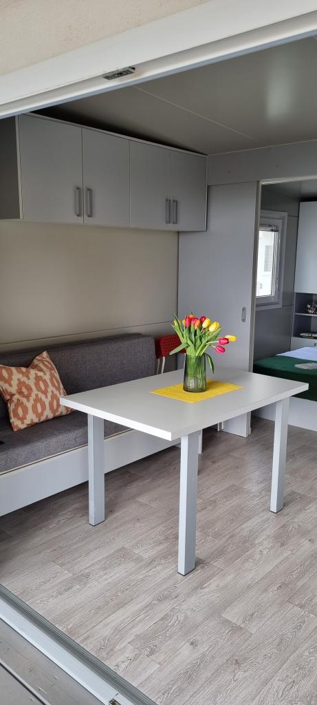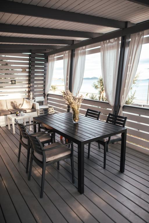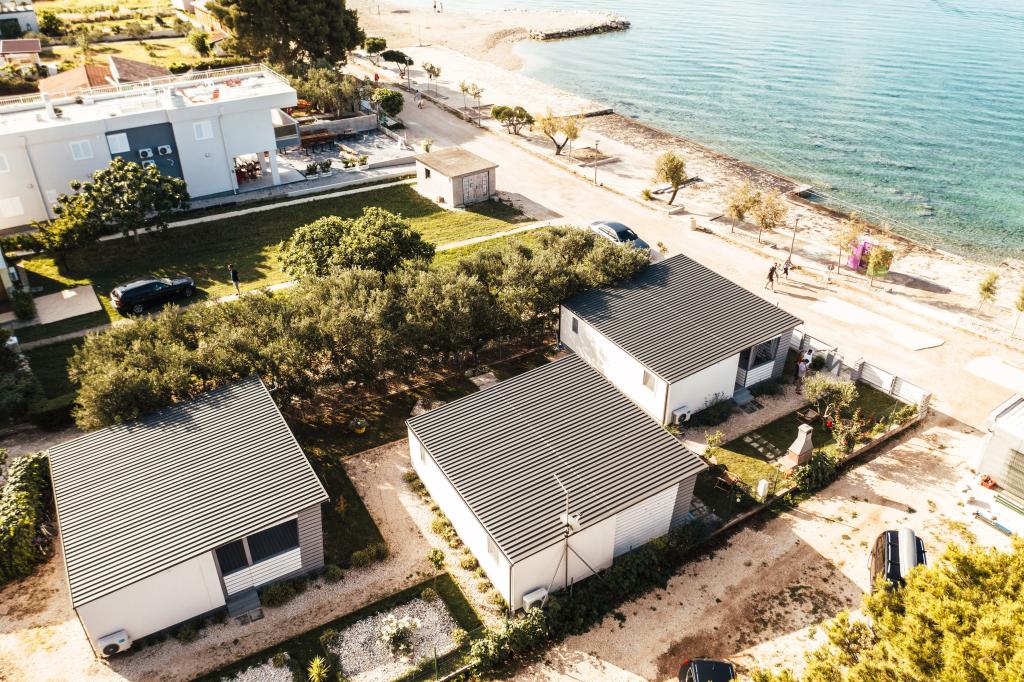 Mobilní domy v centru Pakoštane přímo u hlavní písečné pláže s přímým výhledem na moře. Mobilní domy mají dvě ložnice, jídelnu, kuchyň, WC a velkou terasu (5). Máme také jeden menší mobilní dům (2), který má jednu ložnici, WC, propojenou jídelnu a kuchyň a venkovní terasu. Všichni hosté mají k dispozici gril. Hosté mají k dispozici také parkovací místo. Domácí mazlíčci jsou povoleni, ale platí se za ně příplatek 7 EUR/noc za zvíře.