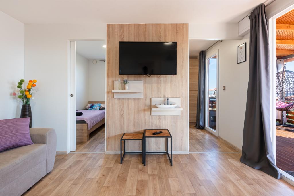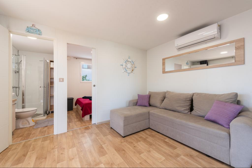 Mobilní dům Seashell se nachází v krásném dalmatském městě Pakoštane. Samotný dům se nachází v soukromém kempu Mara, jen 2-3 minuty chůze od hlavní pláže. Pro úplné a nepřetržité potěšení našich milých hostů jsme poskytli klimatizaci, WiFi ve všech pokojích a na terase, velký plynový gril, TV + (HBO), soukromé parkoviště pro dvě vozidla a velkou (24 m2) a krytou terasu. . Kemp Mara se nachází v samém centru Pakoštane, jen dvě stě metrů od hlavního nábřeží a pláže. Kemp i dům se nachází ve slepé ulici ve velmi klidné a příjemné lokalitě. CHECK IN: od 14:00 CHECK OUT: do 10:00
