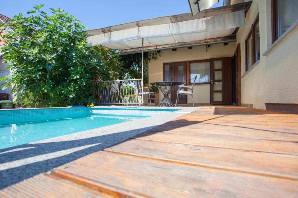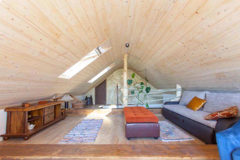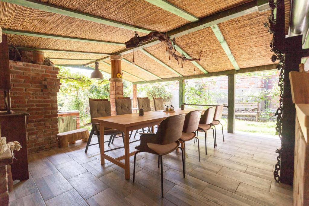 Prázdninový dům obsahuje dva pokoje a galerii s manželskou postelí, dvoulůžkový pokoj se dvěma samostatnými lůžky a přistýlkou pro dva. Má dvě koupelny, kuchyň a prostorný obývací pokoj. Možnost využití venkovního bazénu, sauny a jacuzzi, wi-fi, max-tv, parkování. Obklopen zelení, k dispozici je krytá venkovní terasa s grilem, troubou, kotlíkem, špízy. K dispozici jsou deskové hry, karty, člověče nezlob se, badminton se sítí, luk a šípy, šipky, trampolína a houpačky pro děti.