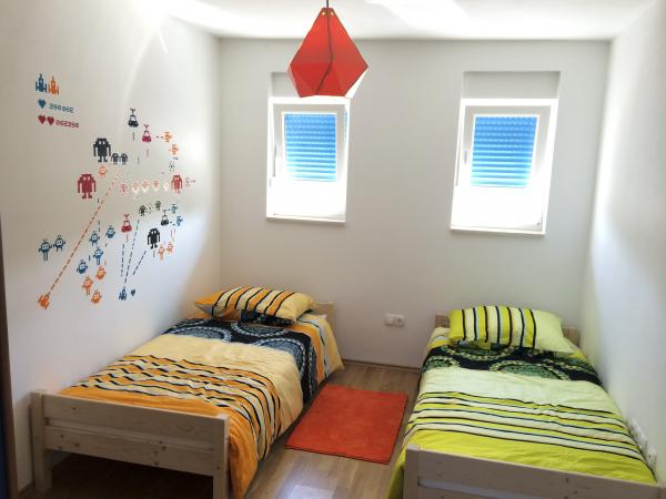 Apartmán Franka se nachází v novém domě moderní architektury, který se nachází v olivovém háji nedaleko pláže v klidné a tiché zátoce Lučina. Moře je mělké, čisté a teplé a dno je písečné, což je ideální pro děti. Byt má zcela nový nábytek, nové domácí spotřebiče, Wi-Fi internet a dvě terasy se zahradním nábytkem (jedna orientovaná na sever, druhá na jih). Naproti zátoce Lučina je ostrov ve tvaru srdce - Galešnjak. Centrum Pašmanu je vzdálené 400 metrů.