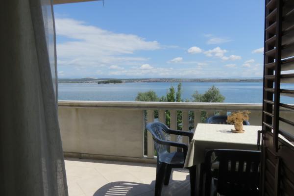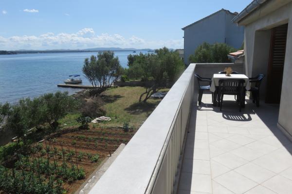 Byt na pobřeží ostrova Pašman. V klidné části Tkonu, ale jen 10 minut chůze od centra. S velkým balkonem a výhledem na Pašman kanálu La Manche.