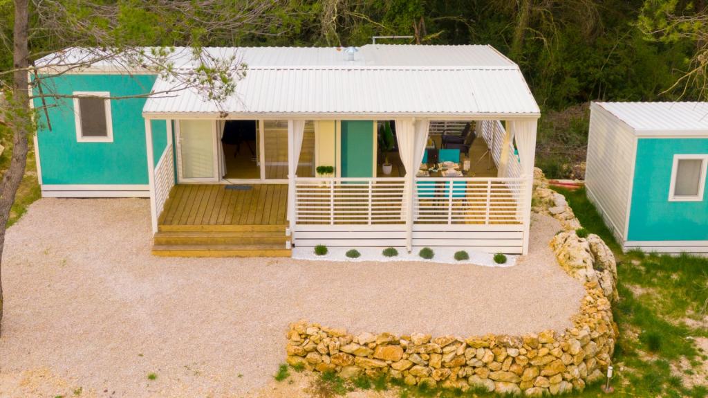 Krásný mobilní dům se super terasou na klidném místě. K dispozici vše, co rodina na dovolené potřebuje, super terasa L, dostatek židlí a dvě pohodlná lehátka. Grilování je skvělé. Pokud jde o psa, mohli jsme ho mít u sebe. Velmi doporučuji. Rudi