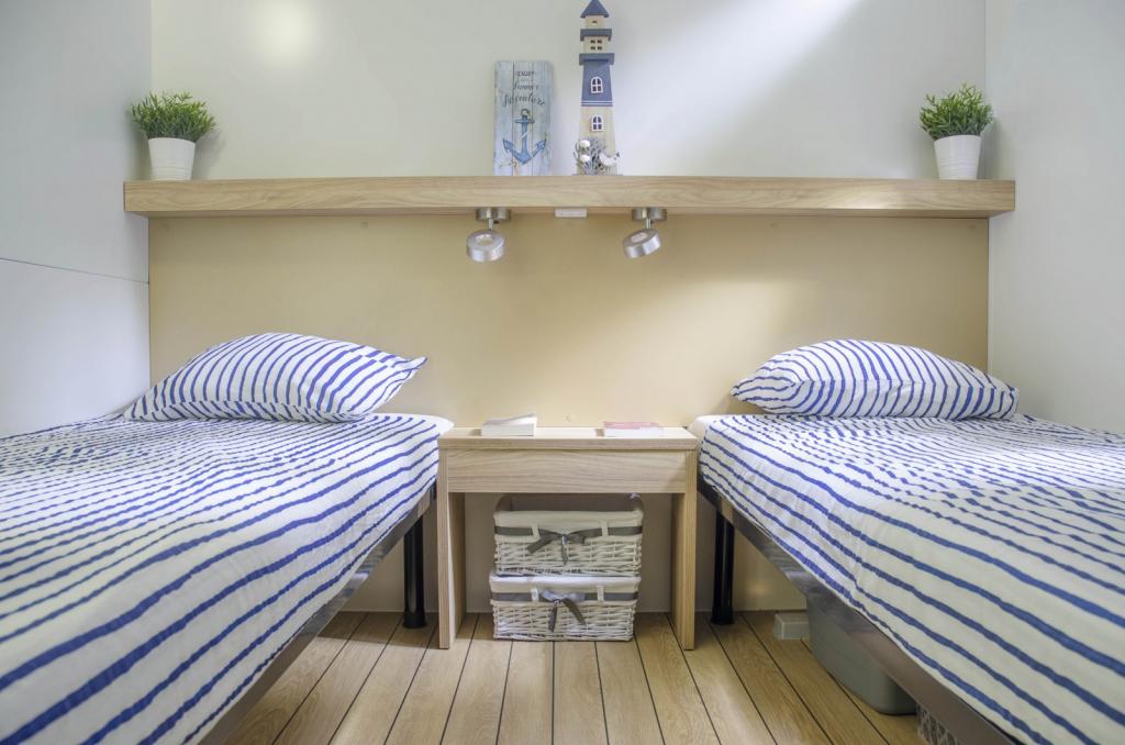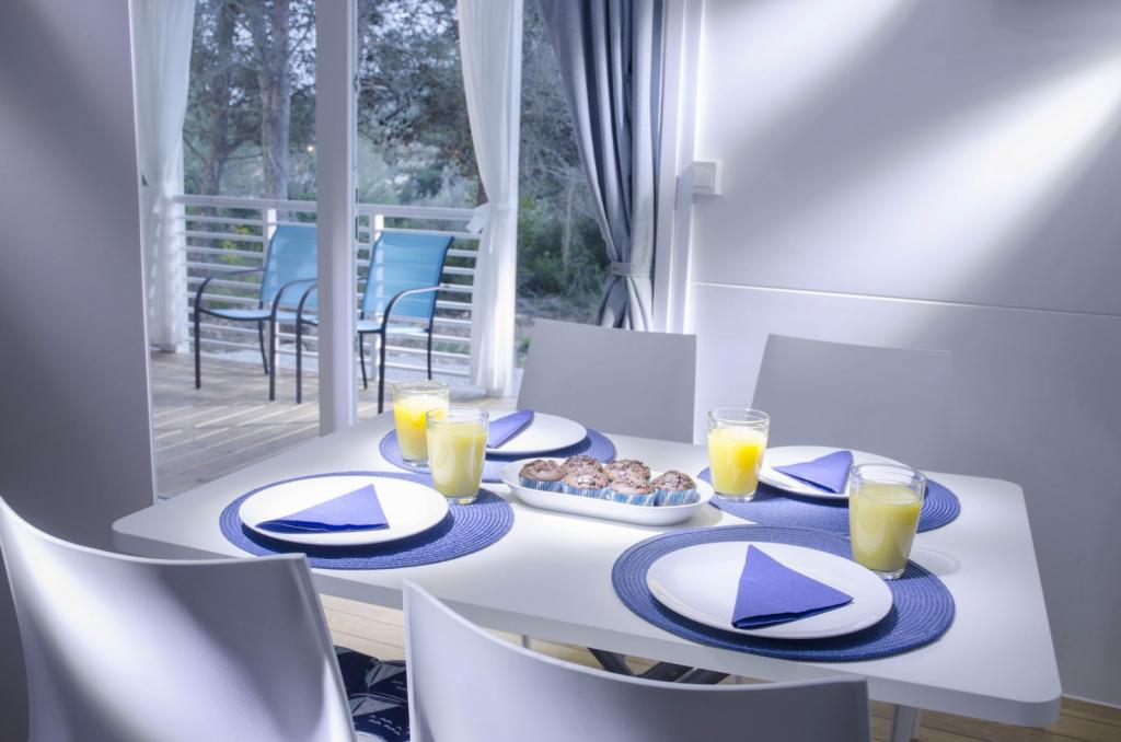 30 m2 plochy domu a 31 m2 plochy terasy pro čistý požitek ze všech smyslů. Nadechněte se čistého mořského vzduchu a užijte si stíny borového lesa. Tento prázdninový dům je ideální pro celou rodinu a širší poloha nabízí mnoho příležitostí pro pěší turistiku, cyklistiku nebo rybaření. Dům má pokoj s manželskou postelí, pokoj se dvěma oddělenými normálními postelemi, koupelnu se sprchovým koutem a WC, kuchyň s velkou lednicí, myčkou, plynovým sporákem, varnou konvicí a všemi dalšími nezbytnostmi, společný prostor s jídelním stolem, výsuv pohovka s manželskou postelí, TV a klimatizací a velká terasa s dalším stolem, posezením a velkými bílými závěsy pro pocit soukromí a romantiky. Zařízení má Wi-Fi internet.