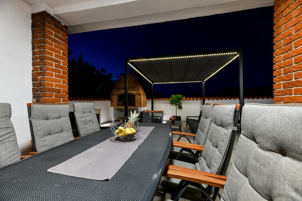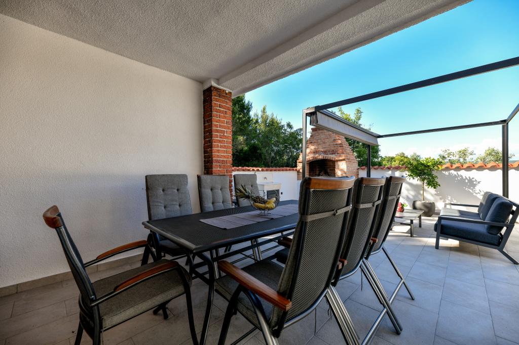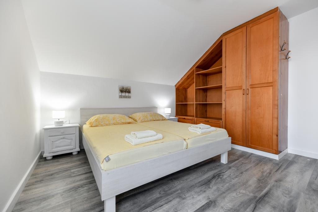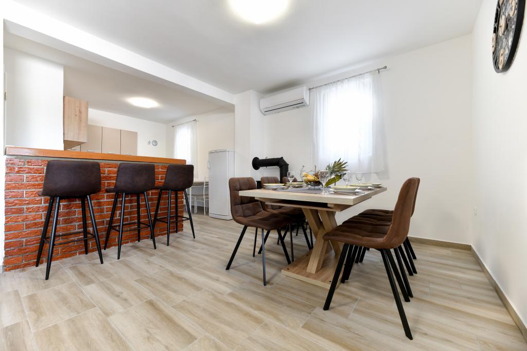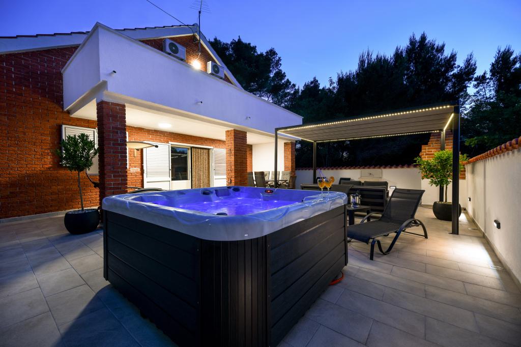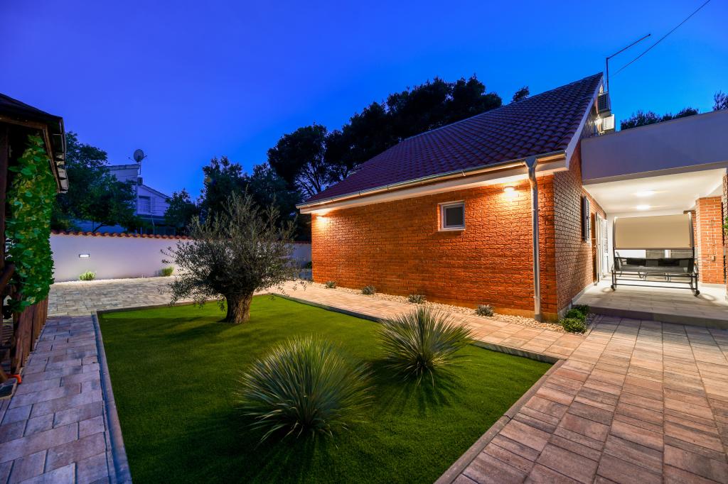 Dům se nachází na ostrově Pašman, v oáze klidu, ticha a krásy typického dalmatského města. Tři minuty chůze na pláž, pět minut do obchodu. V objektu je velká venkovní terasa, gril, lehátka, houpačka pro odpočinek a hydromasážní vana. V přízemí je velký obývací pokoj s kuchyní, dvě koupelny a tři toalety a pračka. V prvním patře jsou 4 ložnice, dva pokoje mají vstup na velkou terasu s výhledem na moře, manželská postel rozměr 180x200 a další dva pokoje mají manželskou postel 160x200 a výhled do lesa. V prvním patře je také jedno WC. Dětská postýlka je k dispozici na vyžádání. Ve dvoře jsou tři parkovací stání, dále možnost využití venkovní sprchy. Dům prošel kompletní rekonstrukcí v květnu 2023. Možný je i pobyt 10 osob, v tomto případě je za příplatek zajištěno ubytování pro dvě osoby ve garsonce na stejném pozemku. Studio má kuchyň se všemi spotřebiči, koupelnu se sprchovým koutem, TV, klimatizaci a terasu s výhledem na moře.