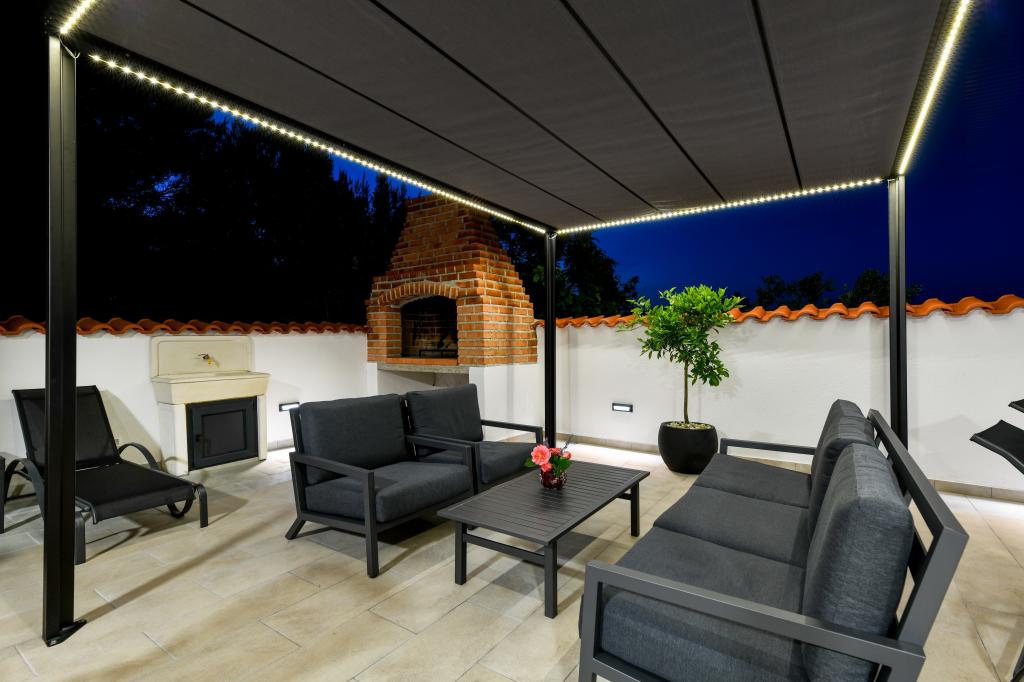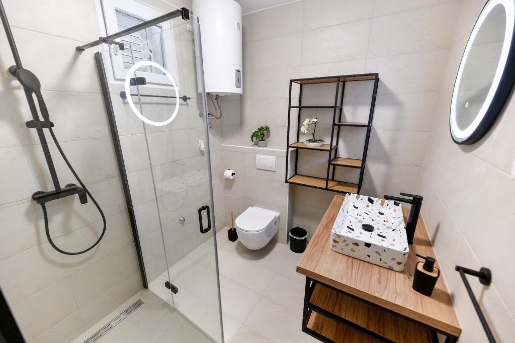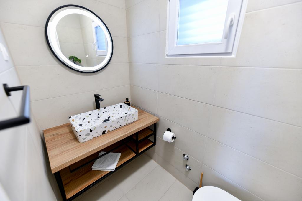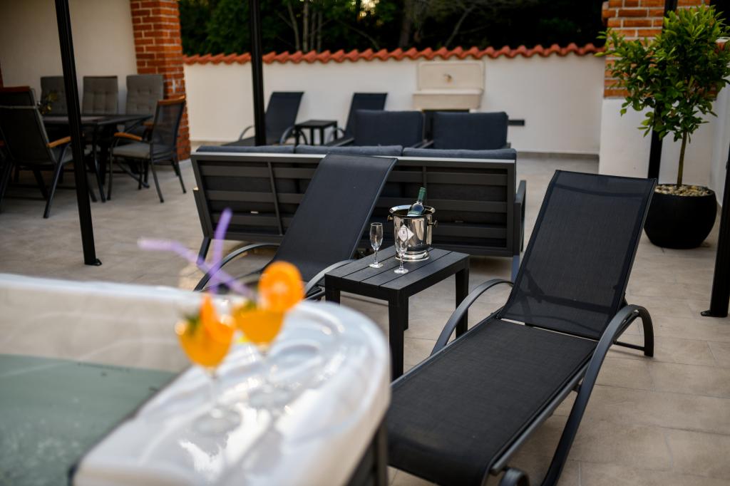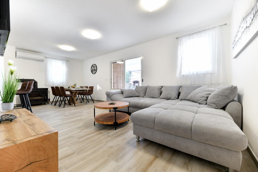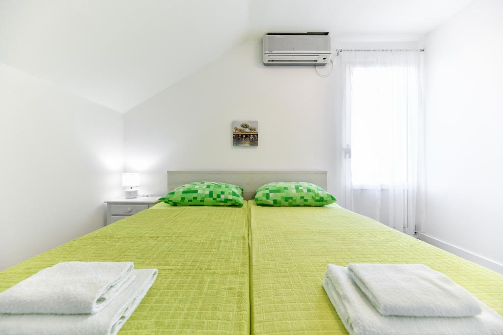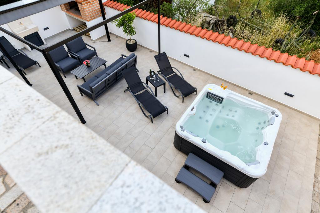 Dům se nachází na ostrově Pašman, v oáze klidu, ticha a krásy typického dalmatského města. Tři minuty chůze na pláž, pět minut do obchodu. V objektu je velká venkovní terasa, gril, lehátka, houpačka pro odpočinek a hydromasážní vana. V přízemí je velký obývací pokoj s kuchyní, dvě koupelny a tři toalety a pračka. V prvním patře jsou 4 ložnice, dva pokoje mají vstup na velkou terasu s výhledem na moře, manželská postel rozměr 180x200 a další dva pokoje mají manželskou postel 160x200 a výhled do lesa. V prvním patře je také jedno WC. Dětská postýlka je k dispozici na vyžádání. Ve dvoře jsou tři parkovací stání, dále možnost využití venkovní sprchy. Dům prošel kompletní rekonstrukcí v květnu 2023. Možný je i pobyt 10 osob, v tomto případě je za příplatek zajištěno ubytování pro dvě osoby ve garsonce na stejném pozemku. Studio má kuchyň se všemi spotřebiči, koupelnu se sprchovým koutem, TV, klimatizaci a terasu s výhledem na moře.