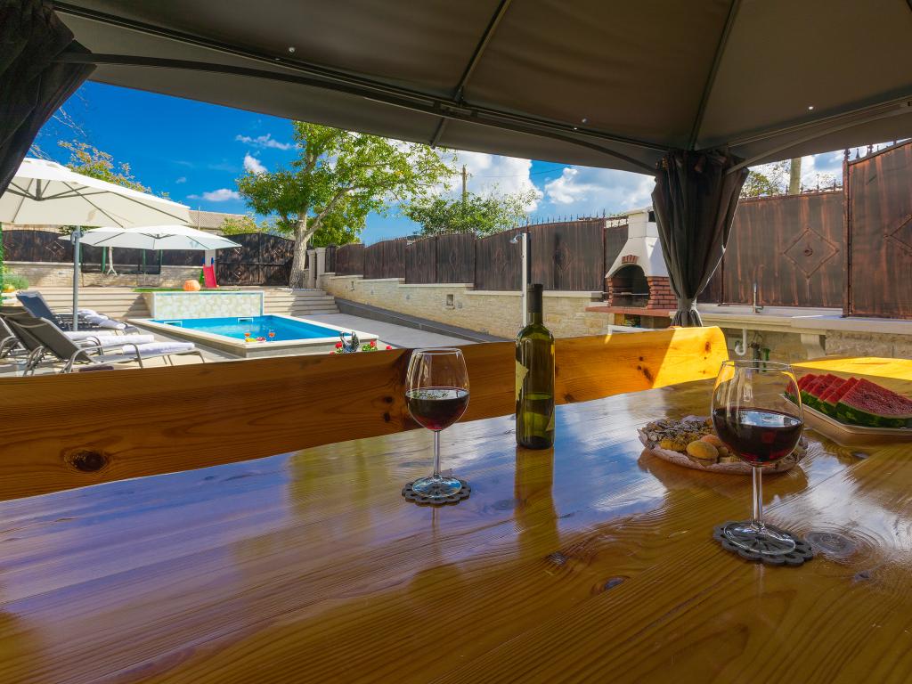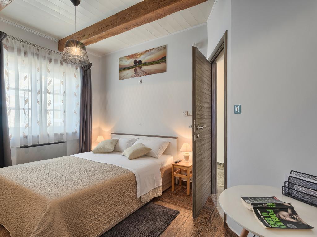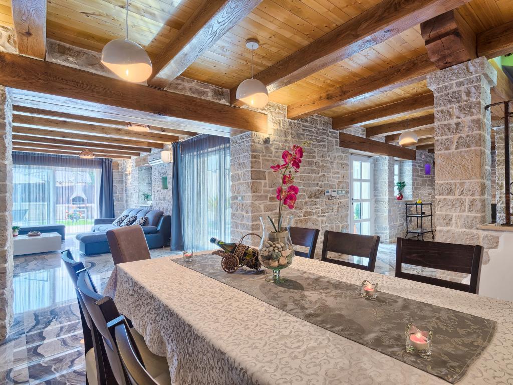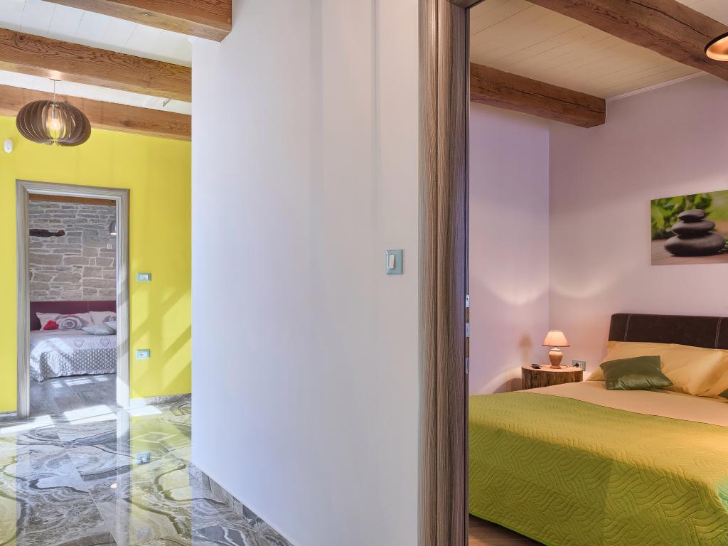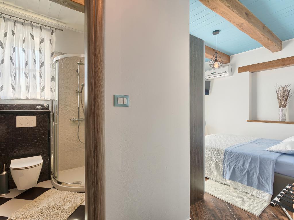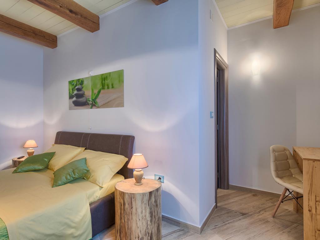 Ať už hledáte únik od shonu každodenního života nebo základnu pro vaši aktivní dovolenou, Villa Patrick je pro vás ideálním místem. Starý kamenný dům z roku 1880, kompletně zrekonstruovaný v roce 2017, se nachází v malém městečku Pilati nedaleko Pazinu v srdci Istrie. Dům o velikosti 200 m2 obsahuje vše potřebné pro pohodlný pobyt až pro 10 osob (8+2), oplocená zahrada o velikosti 500 m2 s bazénem poskytuje klid a maximální soukromí. Ideální poloha v centru Istrie umožňuje plánovat další aktivity, od kulturních a uměleckých, sportovních, historických až po gastronomickou turistiku, protože všechny známé lokality jsou vzdálené 2-40 km. A pokud si chcete rozšířit obzory, místo je ideální pro plánování jednodenních výletů do poněkud vzdálenějších míst jako Pula, Rovinj nebo Umag. Villa Patrick pojme až 10 osob (optimálně 8) a nabízí vám maximální pohodlí. K dispozici jsou čtyři pohodlné ložnice s manželskými postelemi a vlastní koupelnou - každý pokoj má vlastní klimatizaci a televizi se satelitním přijímačem; společný obývací pokoj s krbem a TV se satelitním příjmem, společná koupelna, velká kuchyň se všemi moderními spotřebiči a otevřená jídelna pro 10 osob. K venkovnímu prostoru patří terasa s bazénem, dvě posezení, gril, dětské hřiště, zahrada a kryté stání pro 4 auta. Wi-Fi je zdarma...