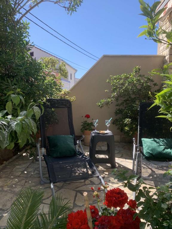 Apartmán v centru města, 100 metrů od moře, nejvyšší umístění. Zařízení je nové, skvěle vyzdobené a vybavené. Byt se nachází v samém centru obce s vlastním velkým soukromým parkovacím místem. Na terase apartmánu se nachází gril a venkovní sprcha.