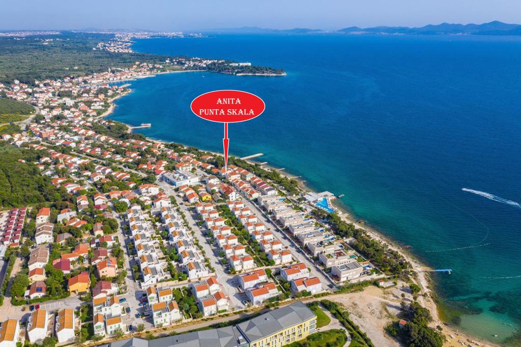 Soukromé ubytování Anita nabízí 4 apartmány zařízené s velkou láskou, s důrazem na detaily, aby se naši hosté cítili co nejpohodlněji. Apartmány se nacházejí v samém centru turistického střediska Punta Skala, 2 minuty chůze od první pláže. Turistické středisko Punta Skala se nachází vedle Petrčane, malé rybářské vesničky s dlouhou turistickou tradicí, mimořádně čistým mořem, krásnými přírodními plážemi a množstvím zeleně. ideální pro příjemnou rodinnou dovolenou. Pláž je v jedné části oblázková, v jiné s kamennými deskami a v malé zátoce písčitá - velmi vhodná pro děti. Kdysi jedno z nejkrásnějších nudistických letovisek na Jadranu nyní nabízí hostům možnost najít si vlastní skrytou zátoku pro příjemné opalování a koupání uprostřed krásných přírodních skal. Jen pár kroků od apartmánu se nachází restaurace, která nabízí snídaně a večeře. Ve stejné budově se nachází velmi dobře vybavený supermarket, dětská herna, sauna a fitness centrum.