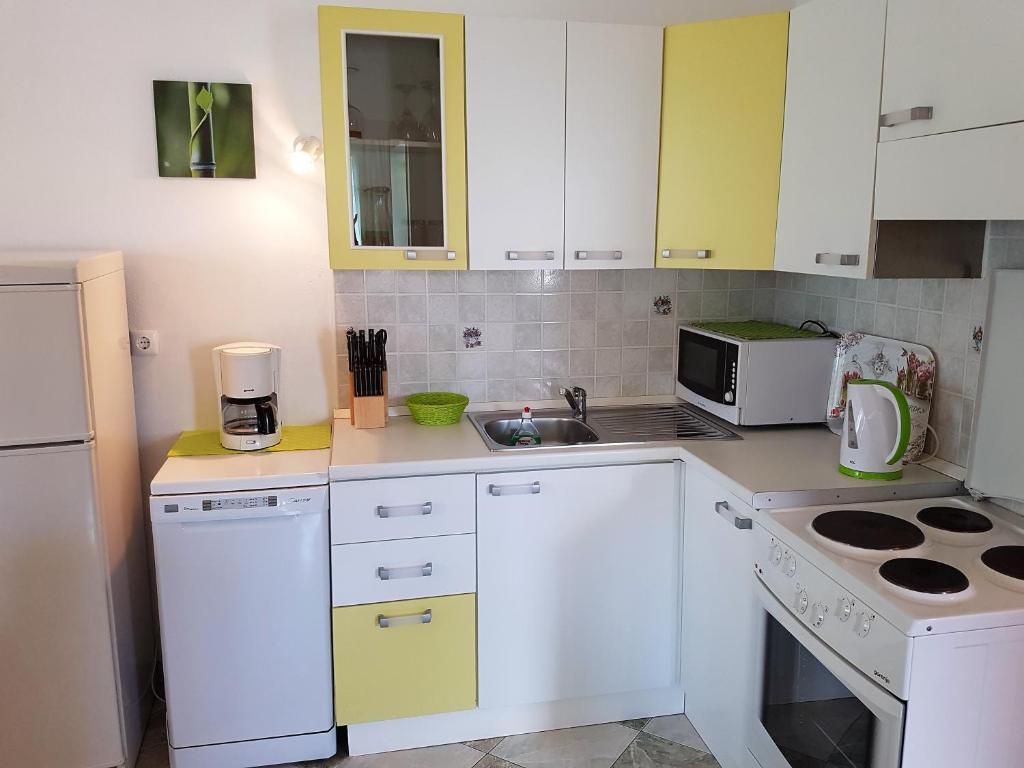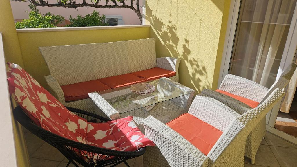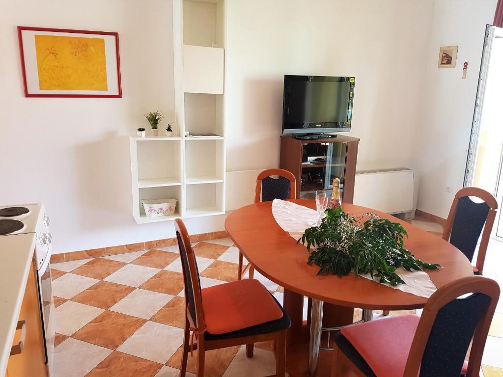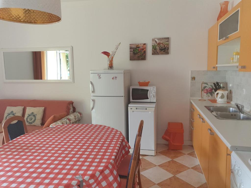 Byt je velmi pěkný, zdobený stylem, bez zbytečných dekorací, velmi dobře vybavené a udržované. Pokoje jsou pěkné a vzdušné, že skříně je zde dostatek prostoru pro osobní věci, v noci je dobrý a klidný spánek, protože pokoje jsou klimatizované a zvukově velmi dobře izolovány. V kuchyni je skvěle vybaven vším, co potřebujete. Sporák má čtyři kola, a má trouba, mikrovlnka, varná konvice, kávovar, toustovač, velká lednice, dostatek místa v mrazáku, ale to je pro mě velmi důležitá a má myčku. Koupelna je moderní a čisté. Na pláži je v blízkosti apartmánů asi 30 m, tam je hodně stínu, a tak čisté vody ještě neviděl. Hostitelé byli nenápadný, ale vždy k dispozici pro co jsme potřebovali, od doporučení pro čerstvé ovoce a zeleninu, čerstvé ryby, výlety do Nin a Zadar, krásné ostrovy v okolí, Národní park Krka, Národní park Plitvice, Národní park Velebit .. . Určitě se budeme vracet a doporučovat našim přátelům.