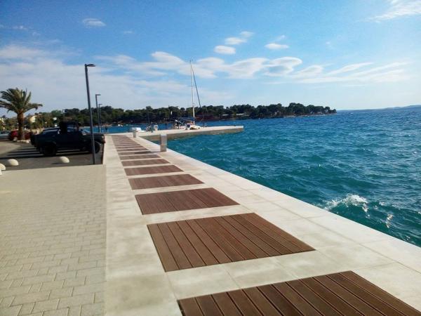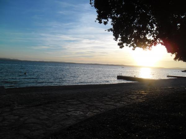 Dobré ubytování, přátelští majitelé, klidné prostředí, v těsné blízkosti (půl minuty chůze), oblázková a betonová pláž s odstínem, možnost velmi dlouhé a příjemné procházky podél pobřeží (s dobrou zmrzlinou) bez dopravy do centra města Zadar, asi 20 minut jízdy, kde každý večer vychutnat v centru města. Příjemná dovolená.