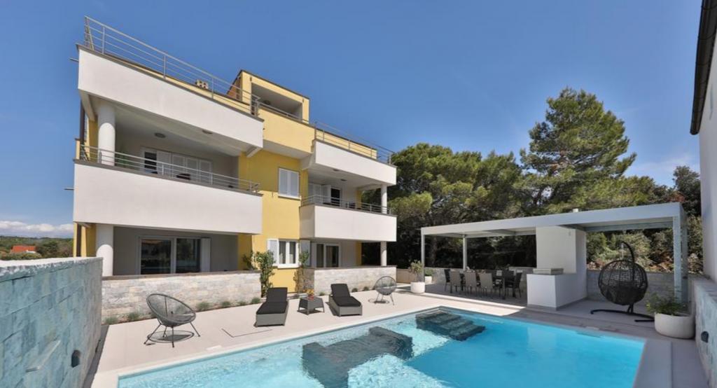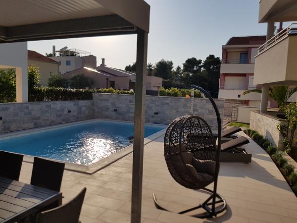 Apartmány Nada se nacházejí v klidné části města Petrčane, Punta Radman, obklopené zelení a krásně upravenou zahradou. Apartmány jsou plně a moderně vybavené a hrdě nesou 4. Našim hostům nabízíme relaxaci u vyhřívaného bazénu, který se nachází ve dvoře. Apartmány se nacházejí 50 m od pláže, 200 m od hotelu Pinija a 300 m od centra Petrčane. Křišťálově čisté moře, krásné pláže a klidné prostředí z nich činí ideální místo pro rodinnou dovolenou.