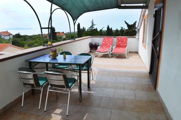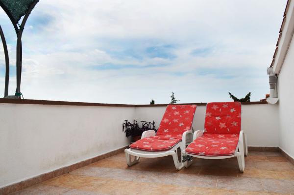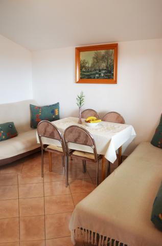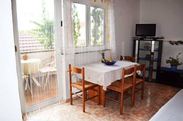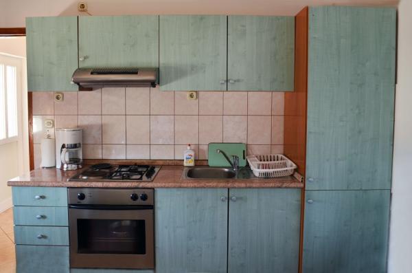 Příjemné, tiché a klidné prostředí, dále od objektů (restaurace, obchody a pláže). Na pláž je třeba jezdit autem (3 - 4 min.), Chůze (30 minut). Apartmán je vhodný pro rodiny, které vyhledávají soukromí a ticho. Majitelé jsou přátelští, ochotní a velmi příjemní. Apartmán byl výborně vybaven adekvátní pro pěti lidí s možností vlastního stravování, využití klimatu a pračky. Devizou byl balkon s krásným výhledem na moře. V objektu se nachází i basketbalový koš.
