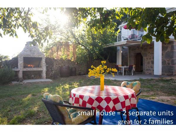 Ubytování pro 7 osob - SKVĚLÉ PRO 2 RODINY - Dům ŽOFICA se skládá ze 2 apartmánů: - přízemí: studiový apartmán MIMOZA, 3 osoby, cca 30 m2, obývací pokoj, sprchový kout, terasa 22 m2, kamenné zdi; - 1. patro: apartmán CIKLAMA, 4 osoby, 40 m2, obývací pokoj, malá ložnice, sprchový kout, balkon. Ostrov Krk, Skrpčići - malá, klidná, pohostinná vesnice. Venkovské prostředí. Asi 4 - 7 minut autem k moři. Ubytování - středomořská atmosféra. Bujná zeleň a skalnaté oblasti. Kamenný gril, velká zahrada, parkoviště. Obchod, dětské hřiště, malé sportovní hřiště, kostel, restaurace 40 m. Dobré spojení s kulturními a zábavními městy Malinska a městem Krk. Trajektový přístav Valbiska 2 km (výlety na ostrov Cres a ostrov Rab), letiště Rijeka 25 km. Daně v ceně. Rezervace se provádí platbou předem, zbytek se platí při příjezdu. Check-in 14-15. Odhlášení 07-10. EnkaraPopenkara@gmail.com 385 976062644